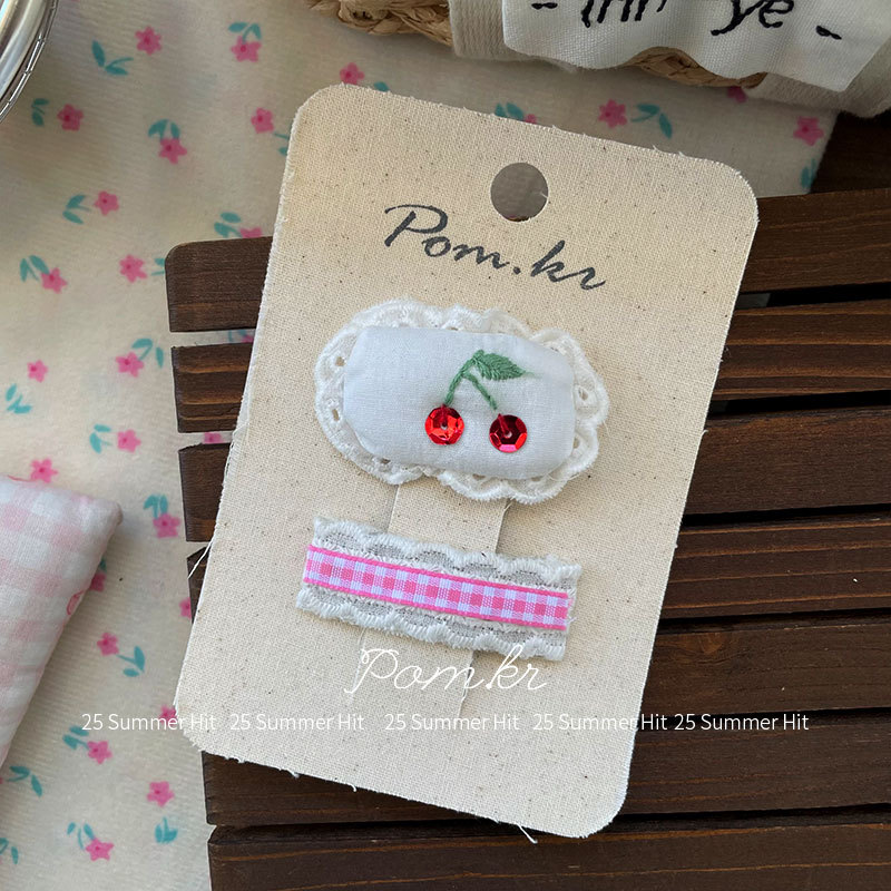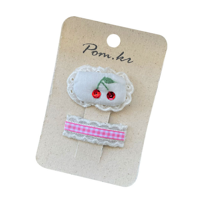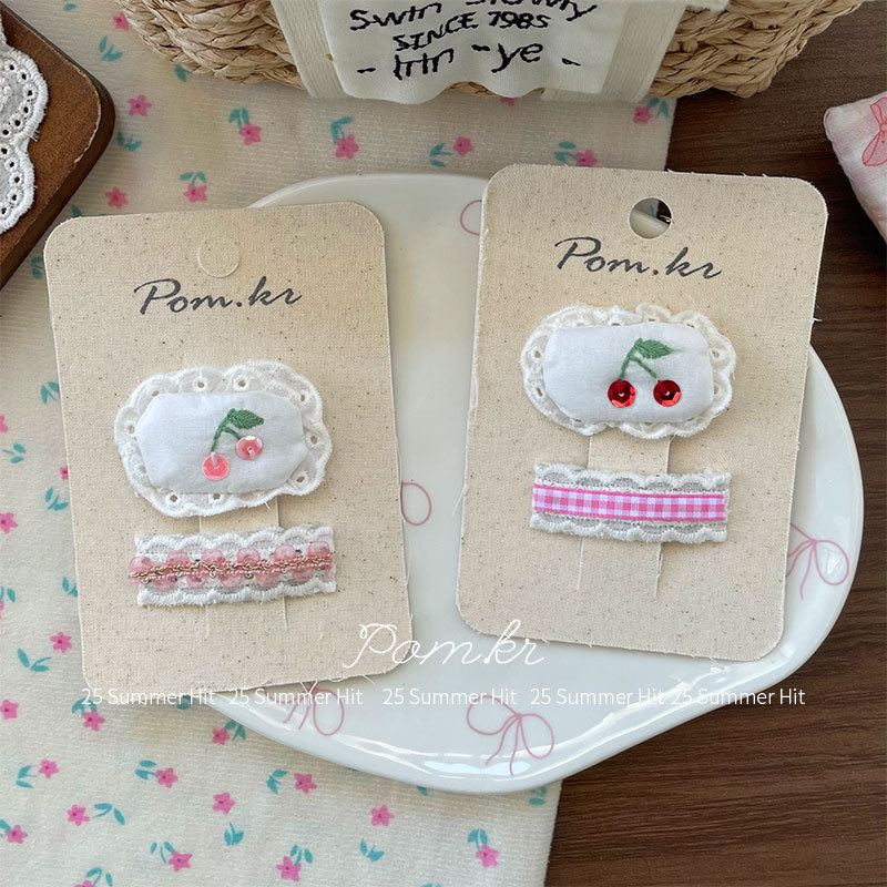 [2] red cherry lace barrettes