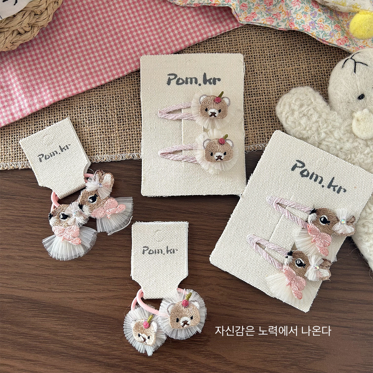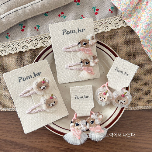 [3] bear embroidery mesh barrettes