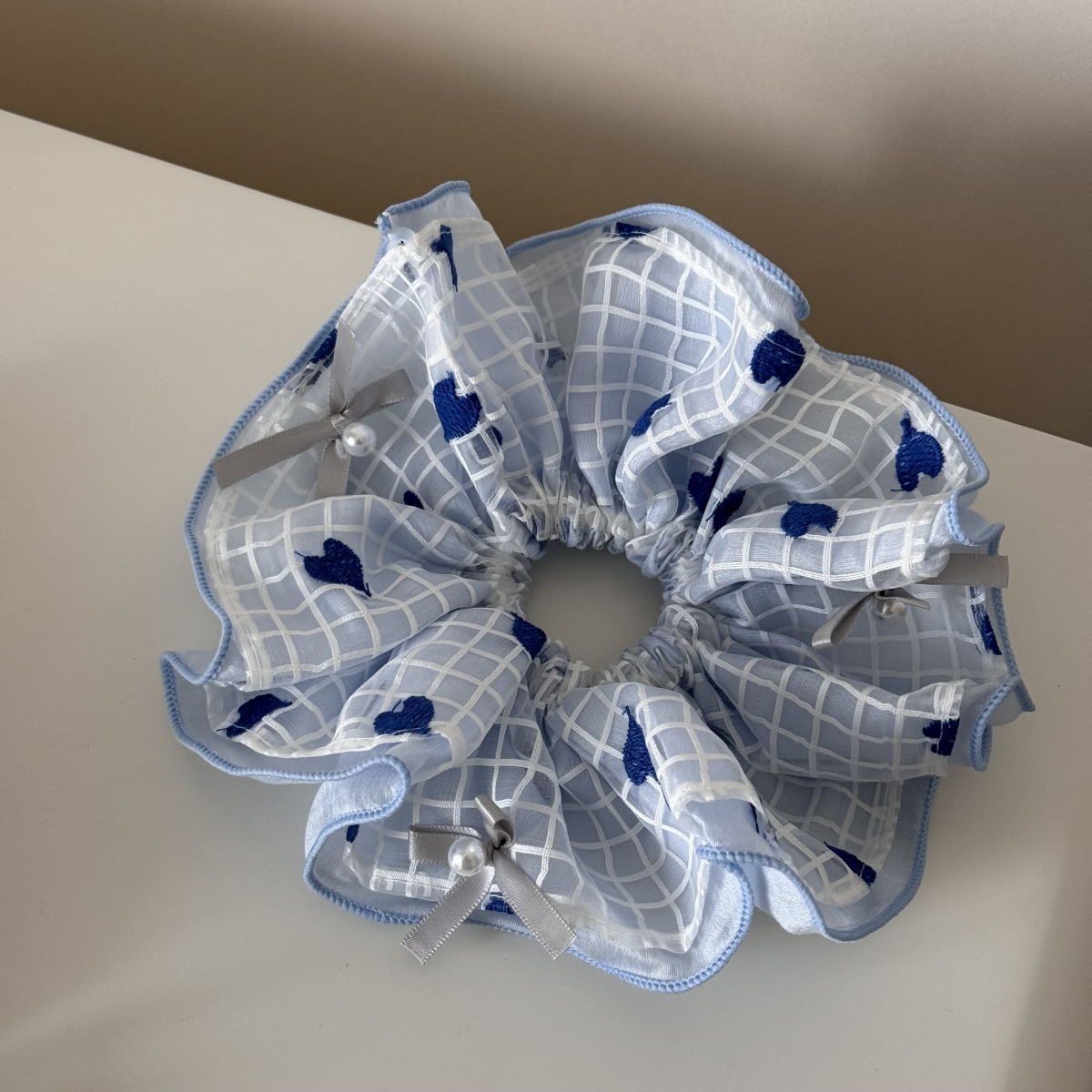 organza blue heart-letter hoop