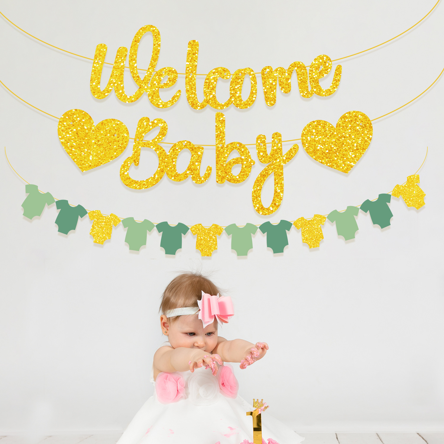 Product Name: Welcomebaby Gold Lace Flag