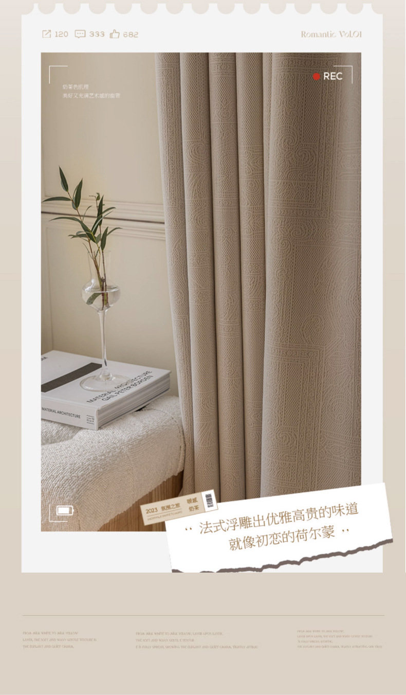 chenille french relief shading curtain whole house living room bedroom balcony cream style awning curtain finished product customization 中文版