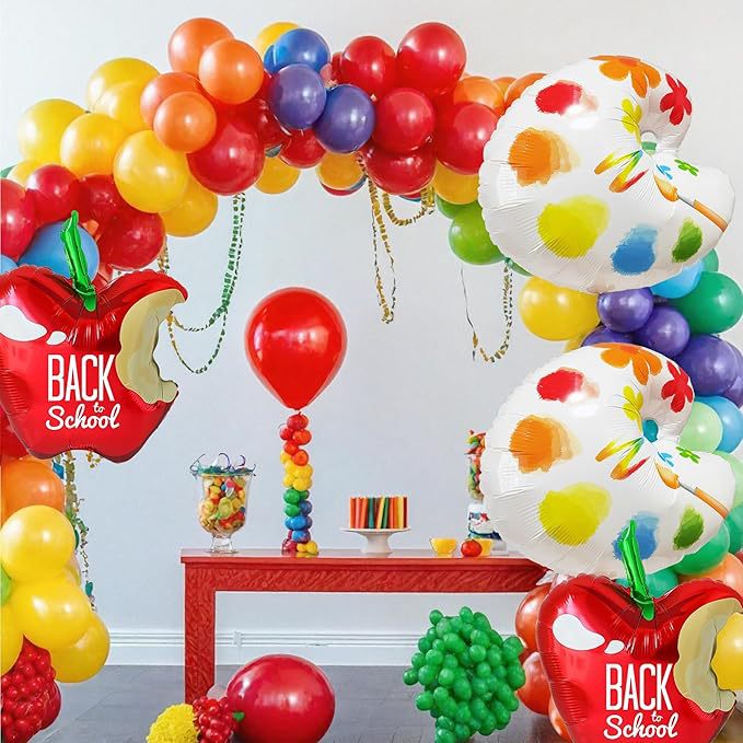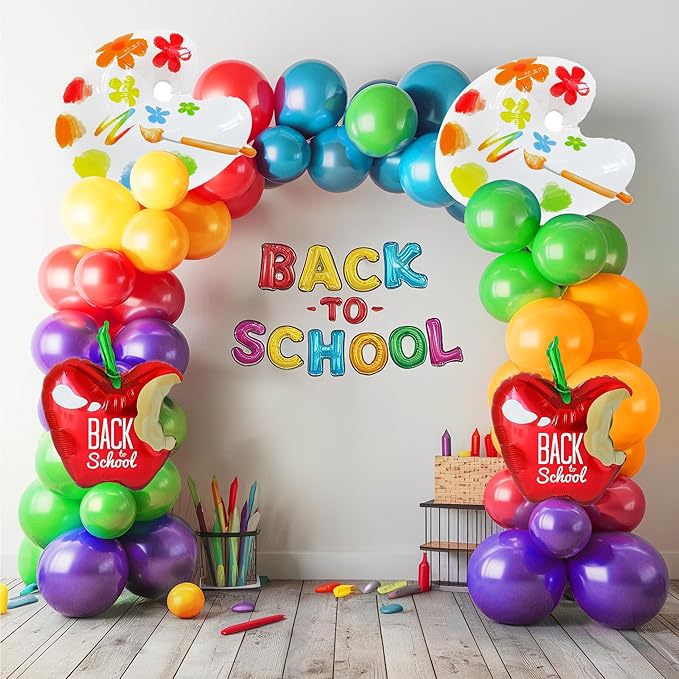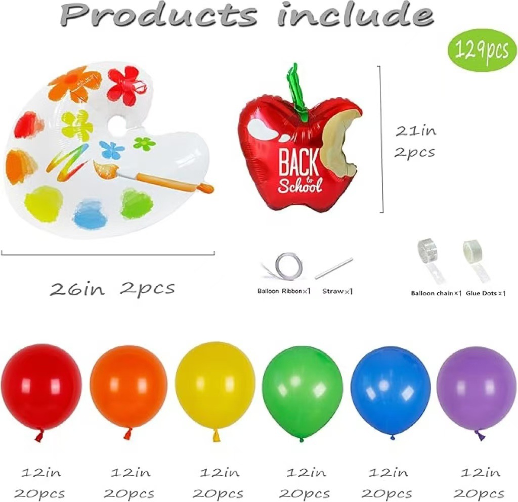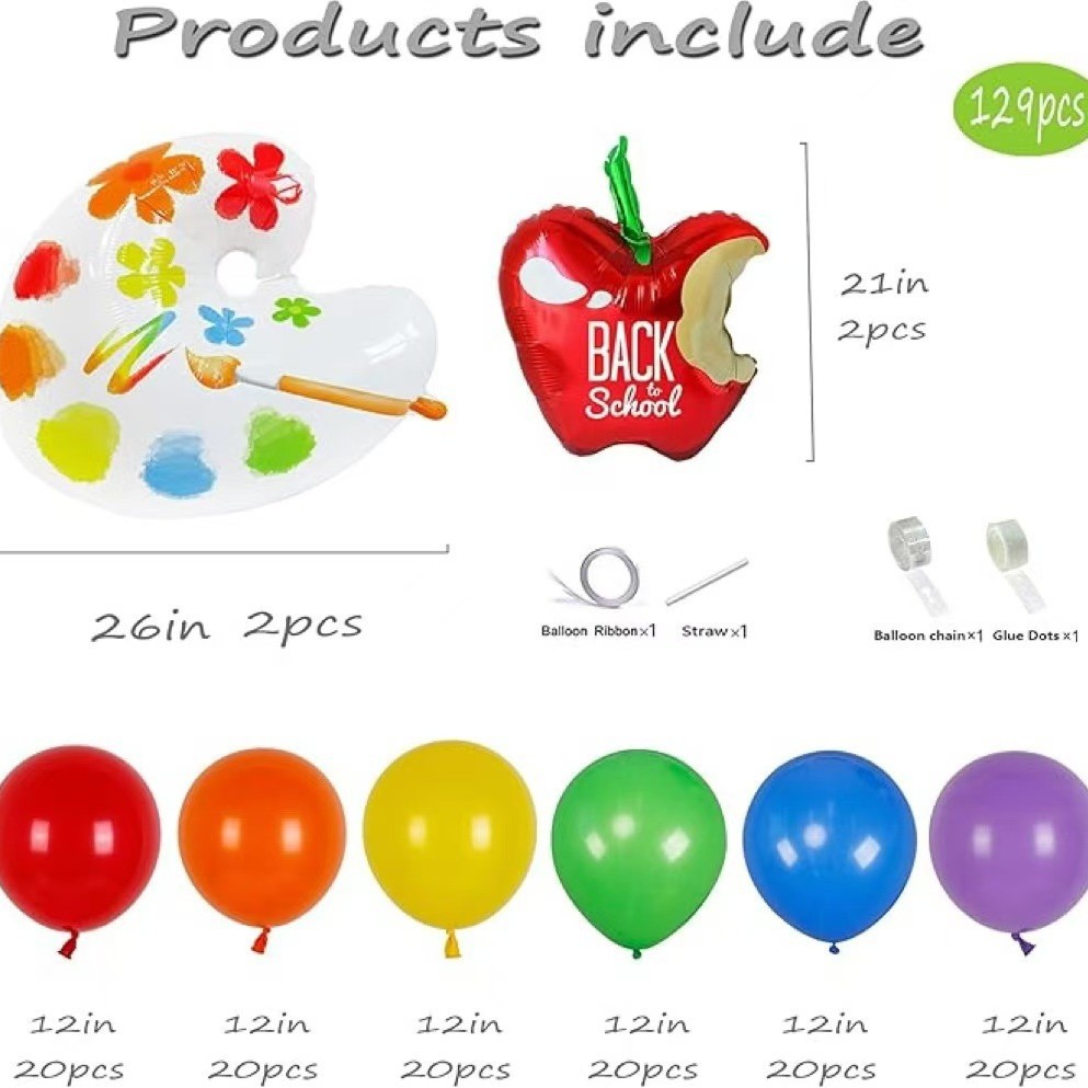 back to school rainbow rubber balloons garland arch kit children's birthday kindergarten first day palette decoration pie 中文版