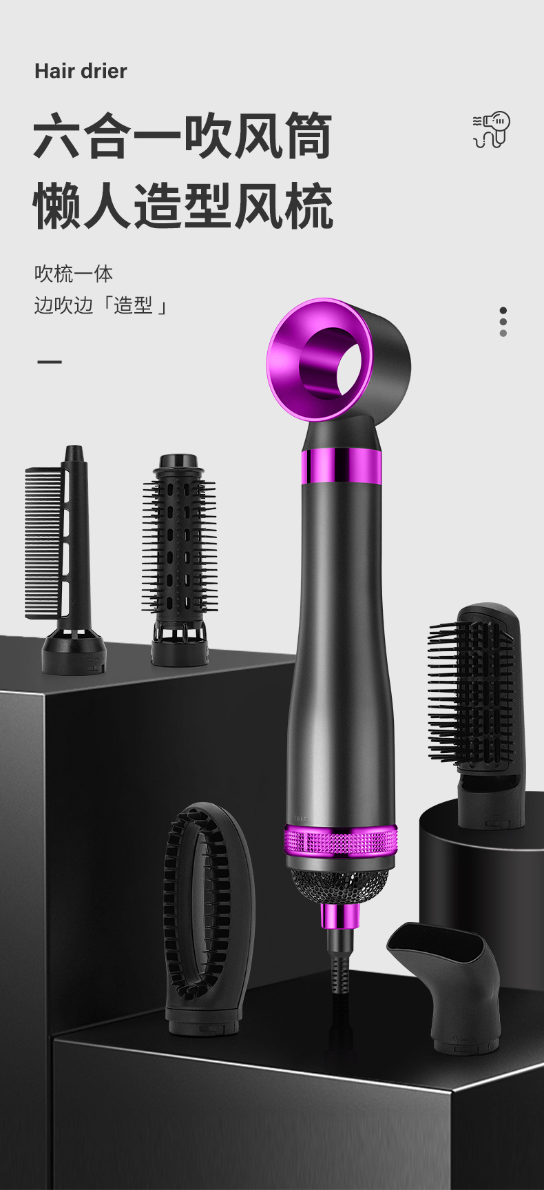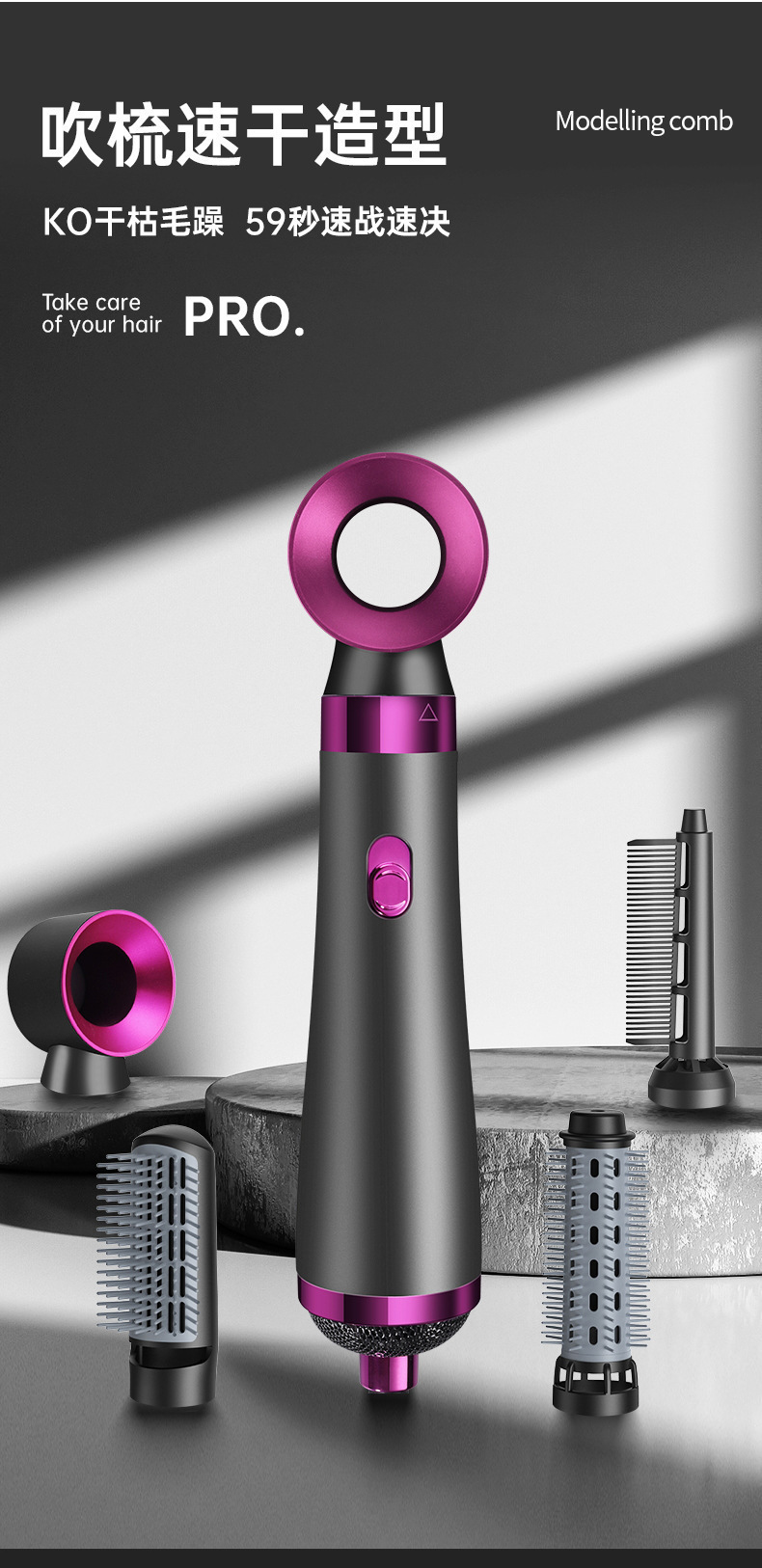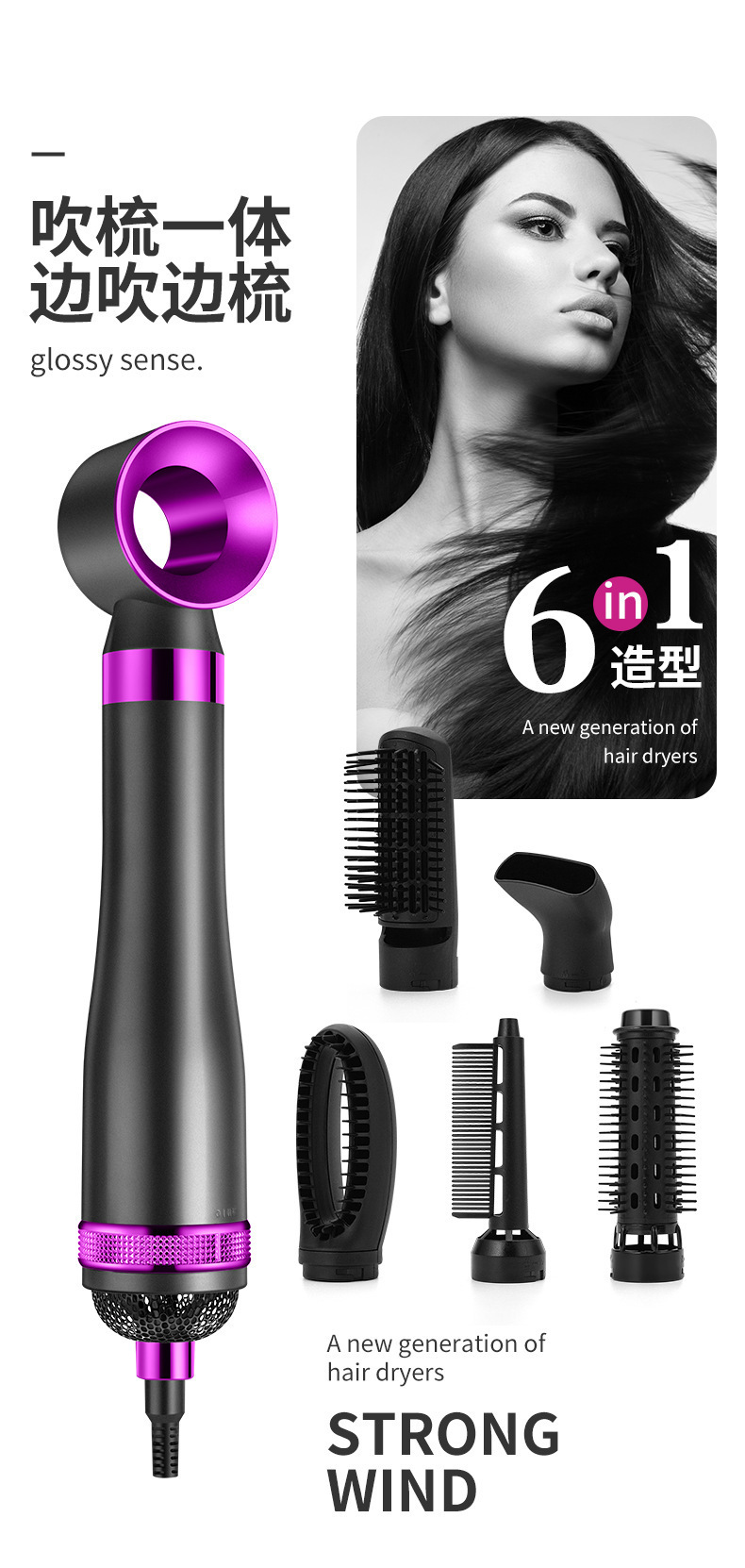 strict selection high-speed hair dryer straight hair comb electric hair curlers blowing and combing six-in-one machine negative ion shape hair dryer