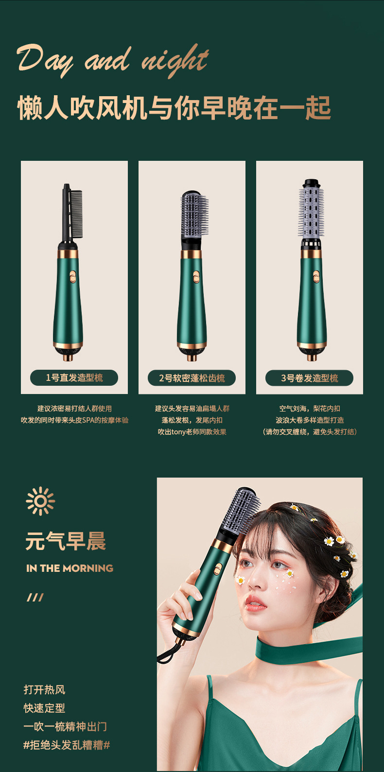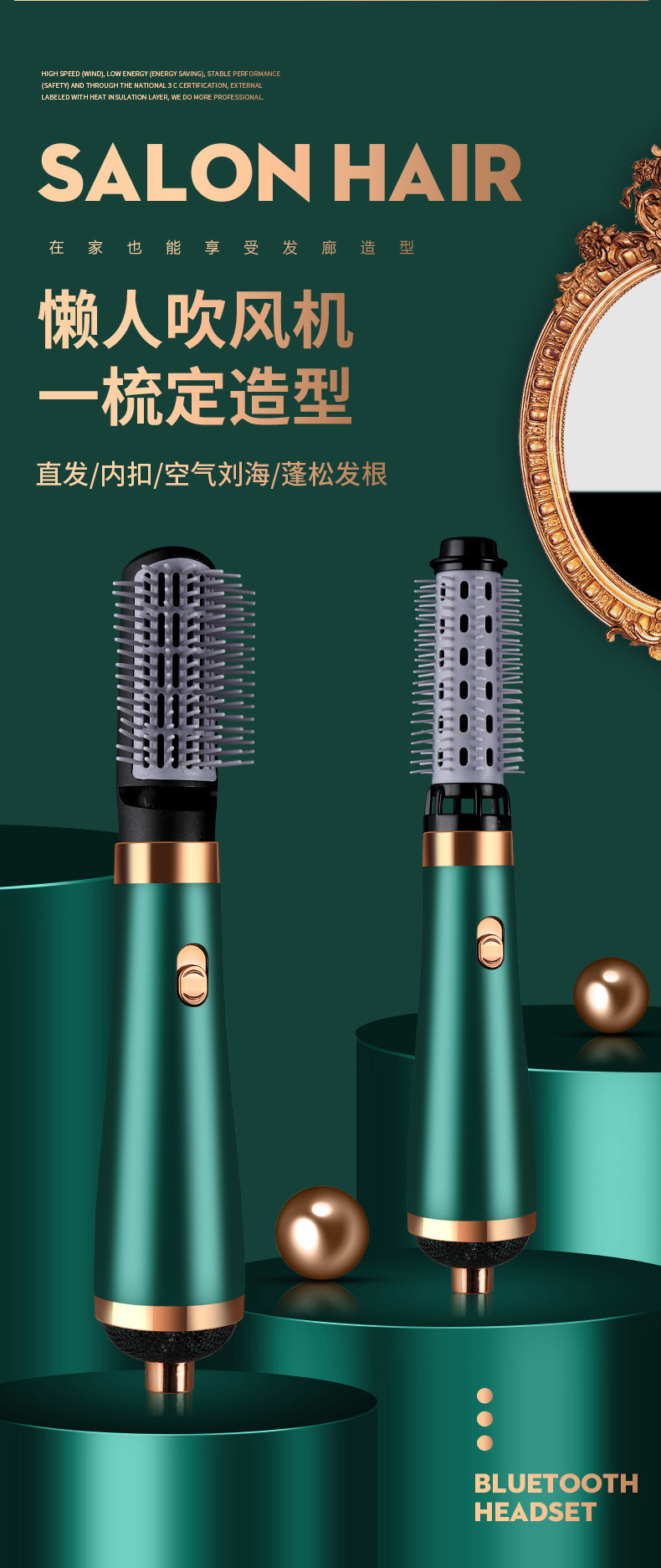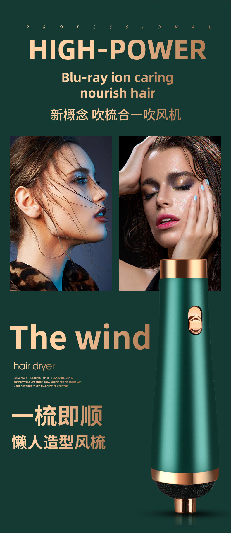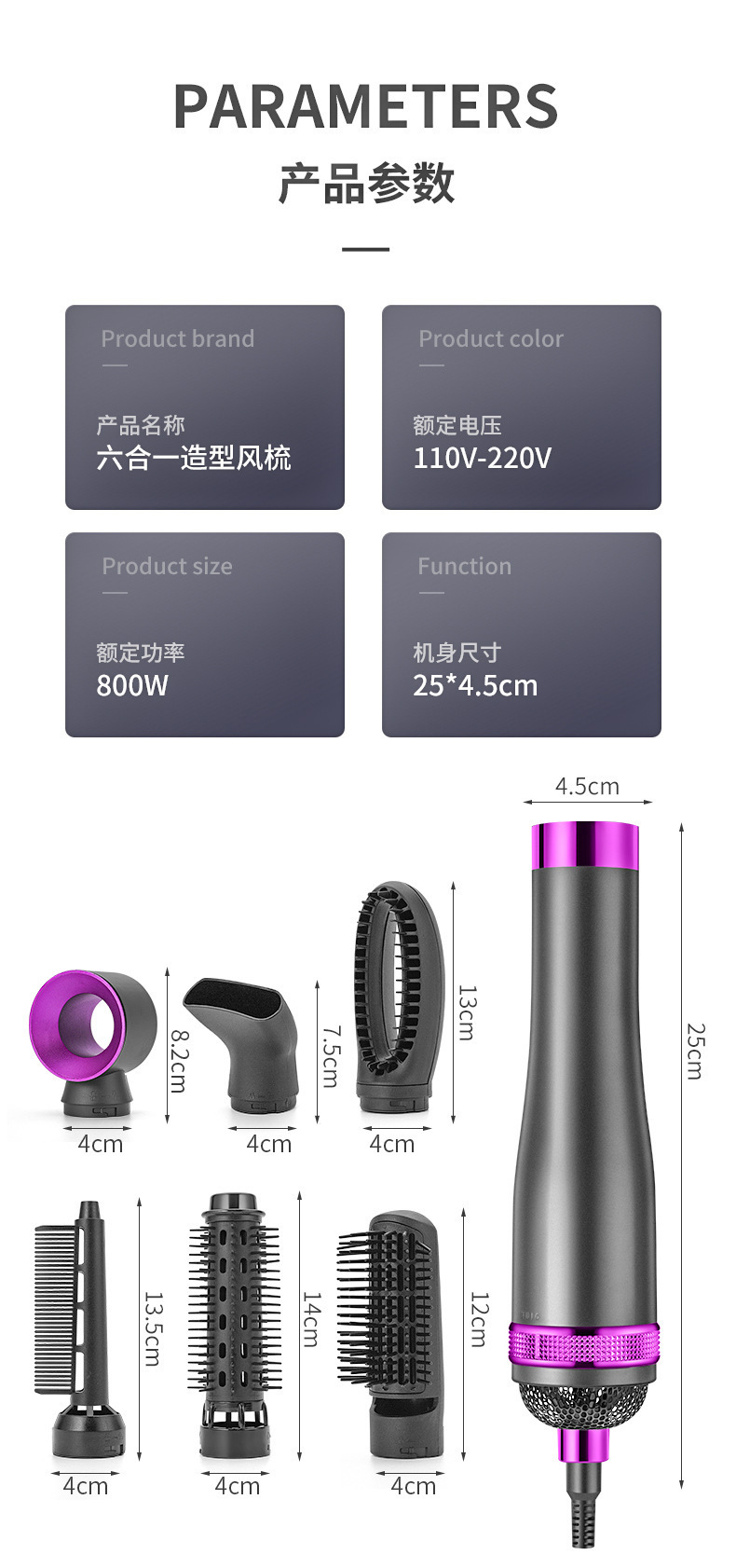 strict selection high-speed hair dryer straight hair comb electric hair curlers blowing and combing six-in-one machine negative ion shape hair dryer