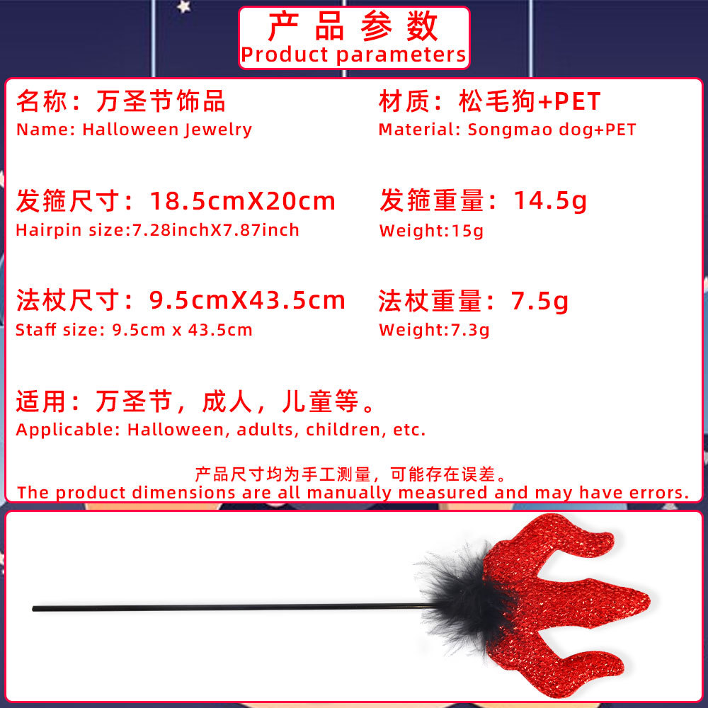 new halloween red devil suit festival masquerade show props horn headband trident cane 中文版