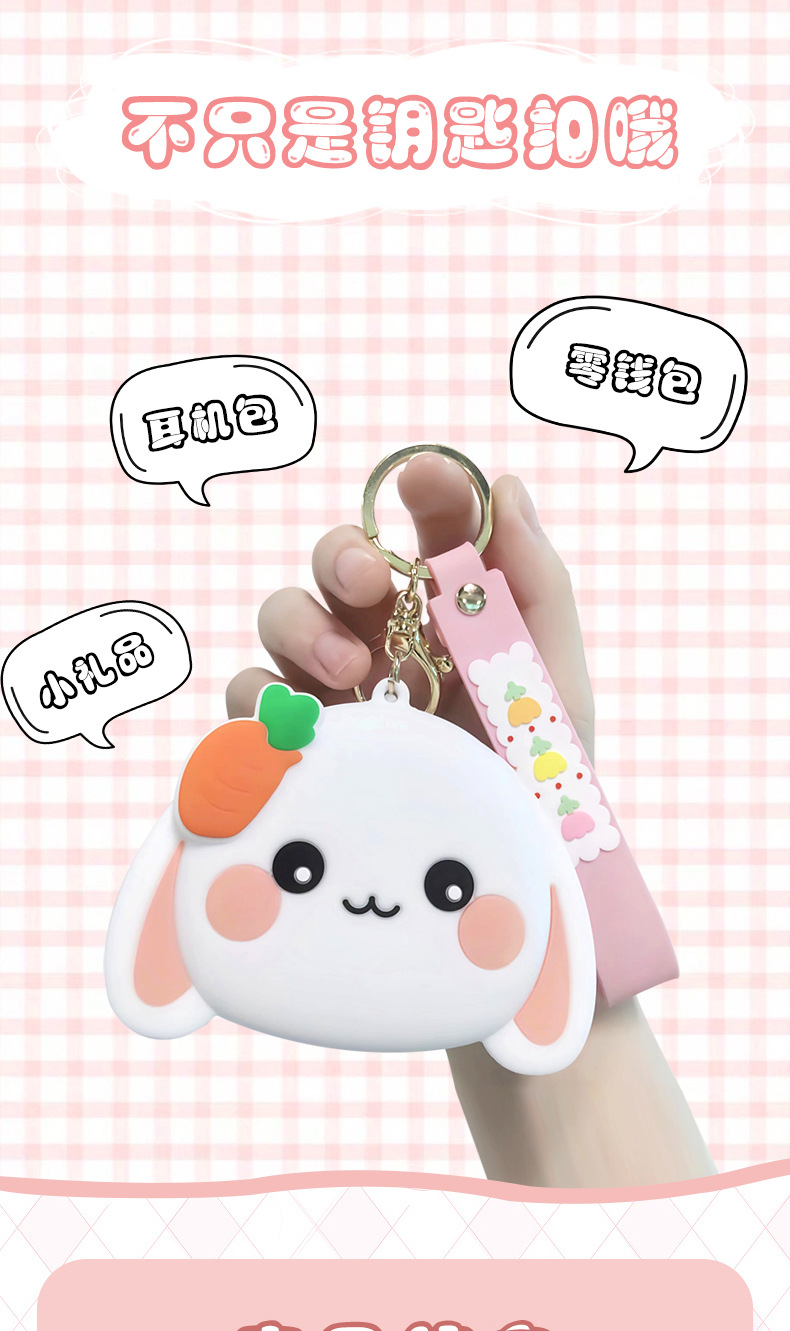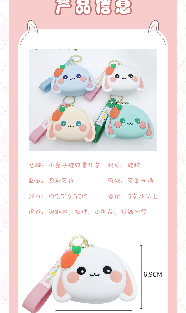 cute bunny silicone coin purse cute mini children wallet cartoon stylish bag keychain pendant 中文版