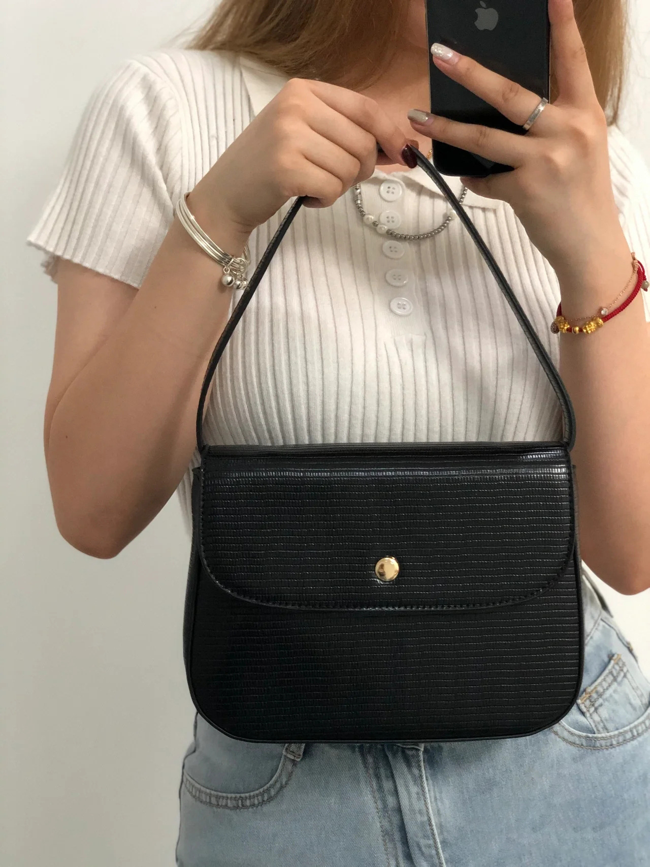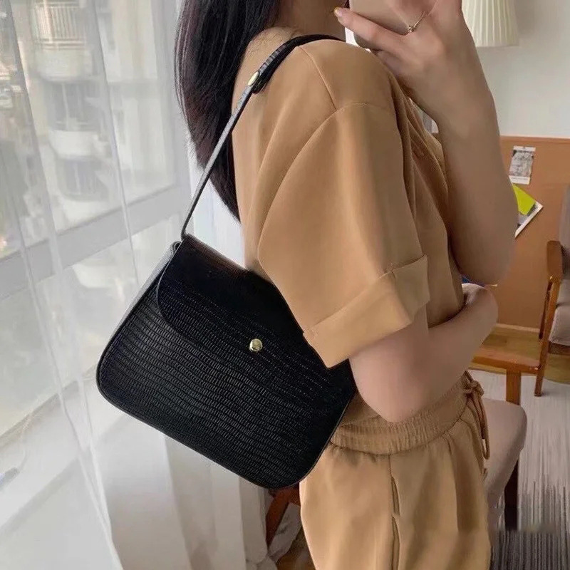 cross-border retro women's bag south korea special-interest design mei na small square bag underarm baguette bag shoulder portable lizard pattern 中文版