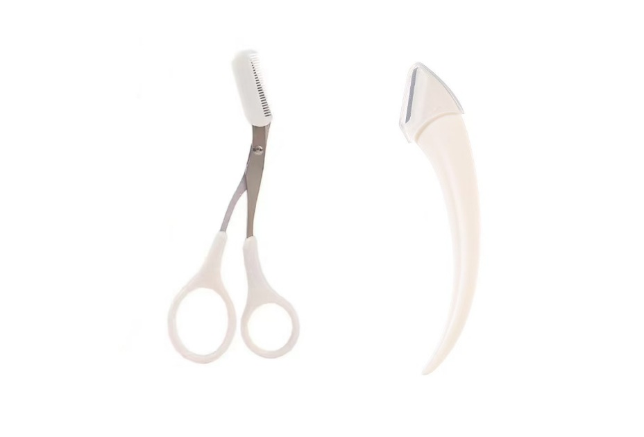 white eyebrow trimmer + white moon eyebrow pencil