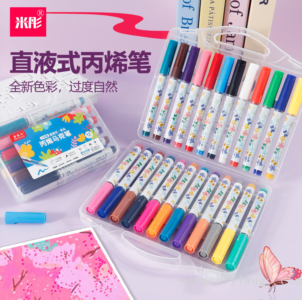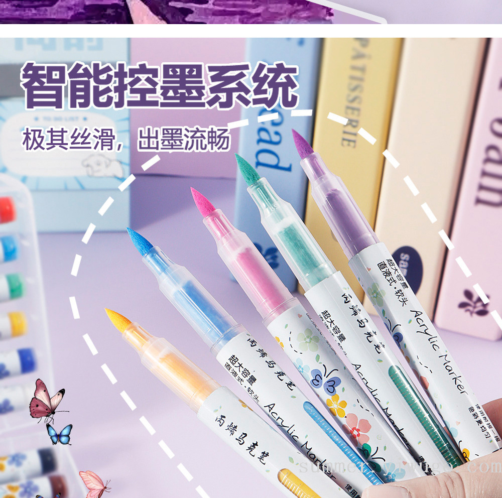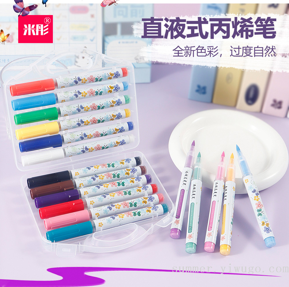 straight liquid acrylic marker pen soft head brush suit waterproof quick-drying watercolor pen children graffiti painting acrylic pigment pen 中文版