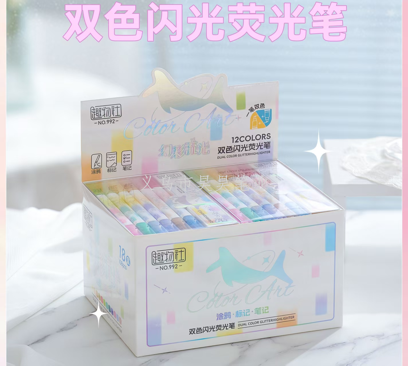Product code: BL-992 Dual-color Dual-tip Eye-protective Fluorescent Pen