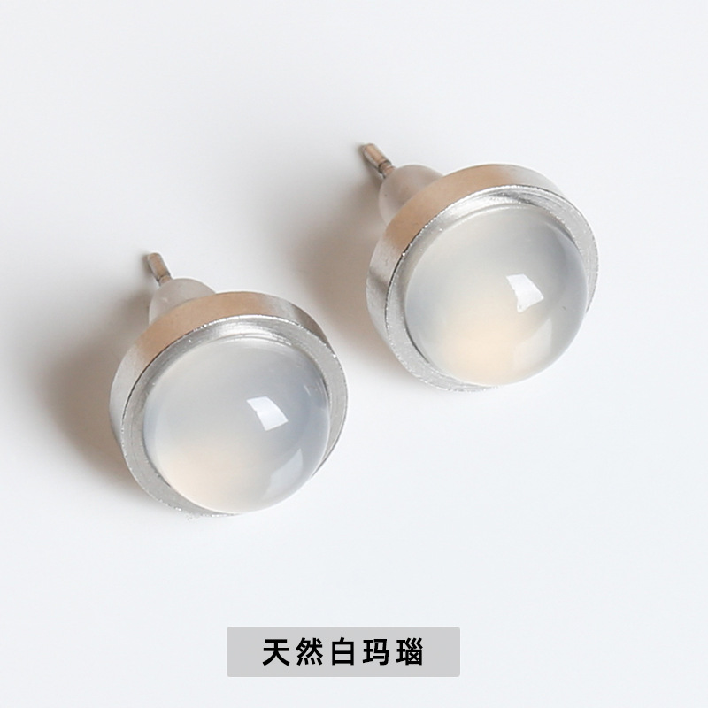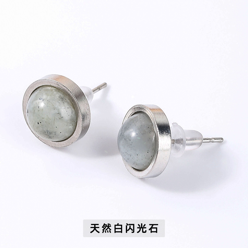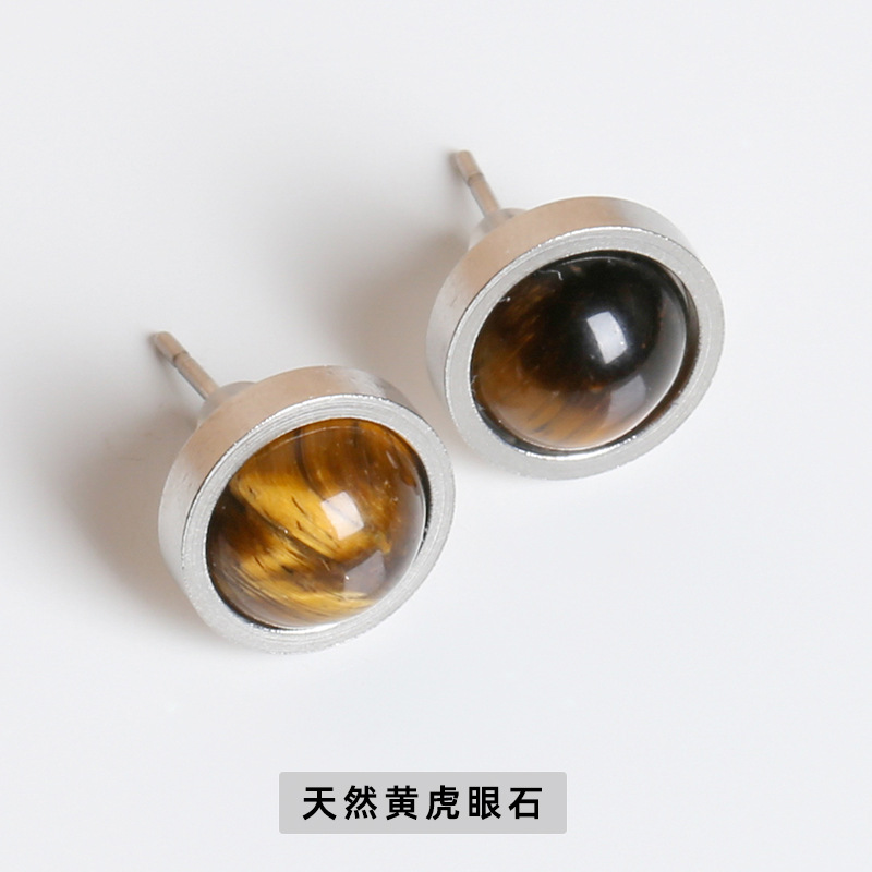 Red agate beaded stainless steel earrings, agate earrings, tiger's eye stone earrings, turquoise earrings, simple stainless steel beaded earrings, wholesale