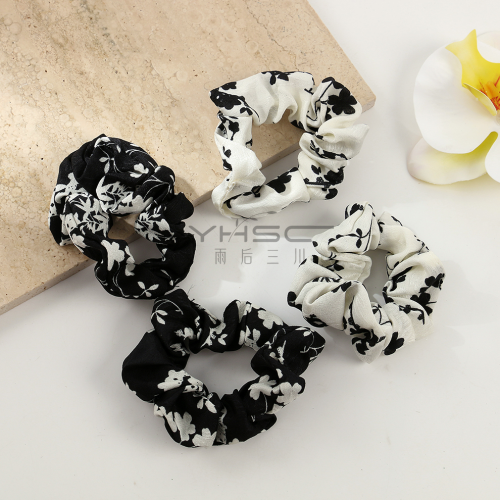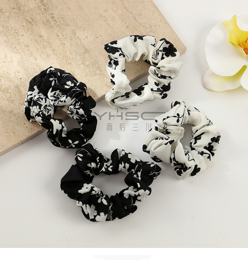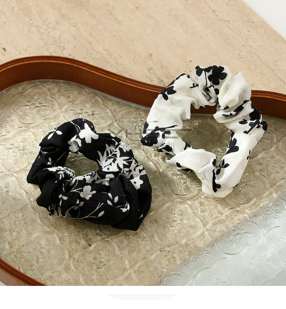 summer elegant black and white floral large intestine hair band sweet hair accessories female hair tie bun intestine mori style headband 中文版