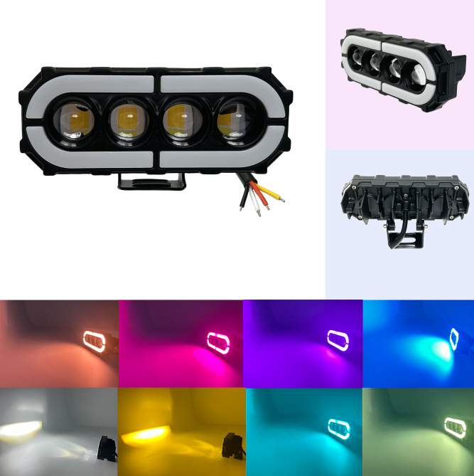 new led car lights motorcycle electric car spotlight headlight yellow white light with rgb color circle waterproof headlight 中文版