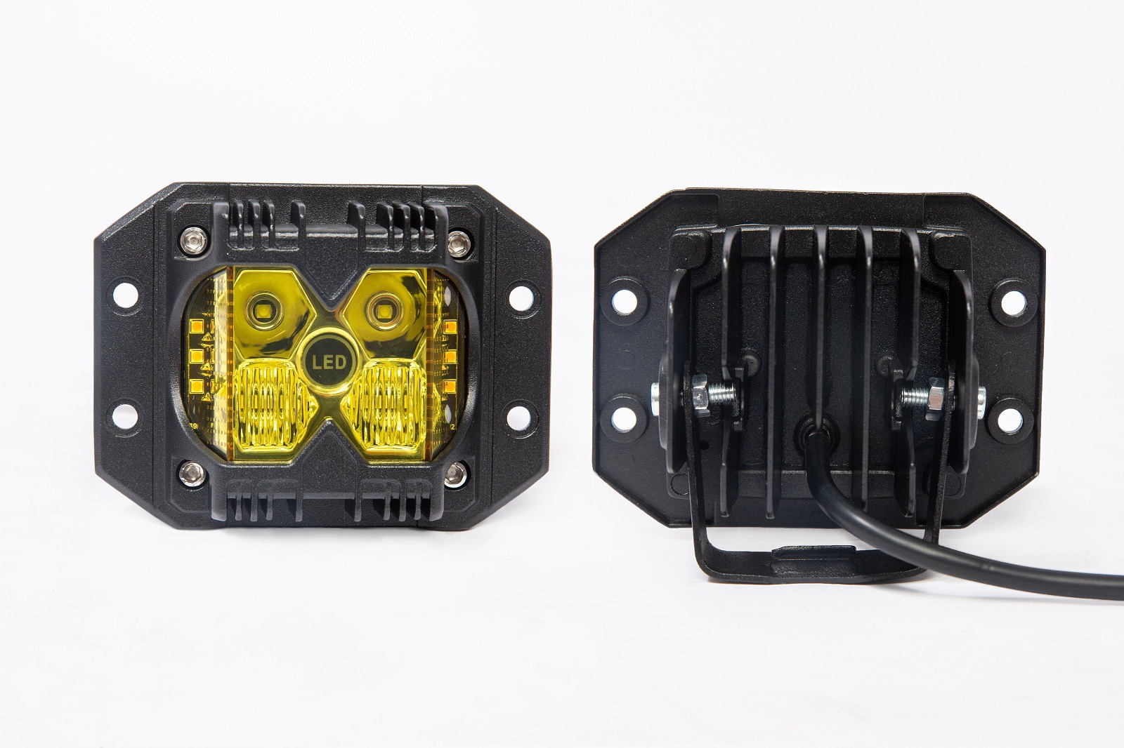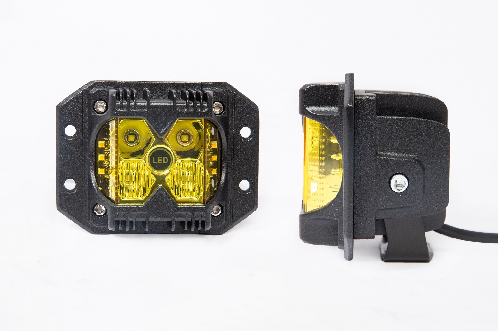 new led light 4-inch three-side luminous off-road pickup truck heelpiece side flash embedded modified motorcycle spotlight 中文版