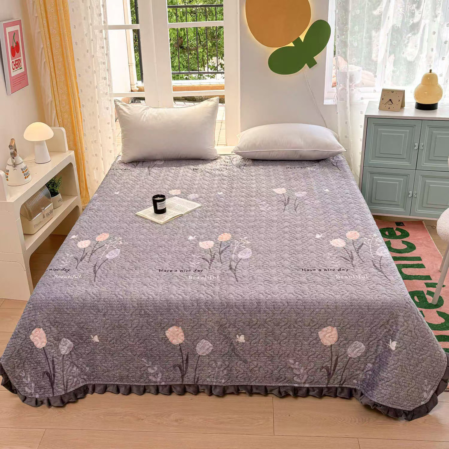 Bedding four-piece set, sheet, quilt cover, and bedspread set in stock, support customizing in various sizes and specifications.