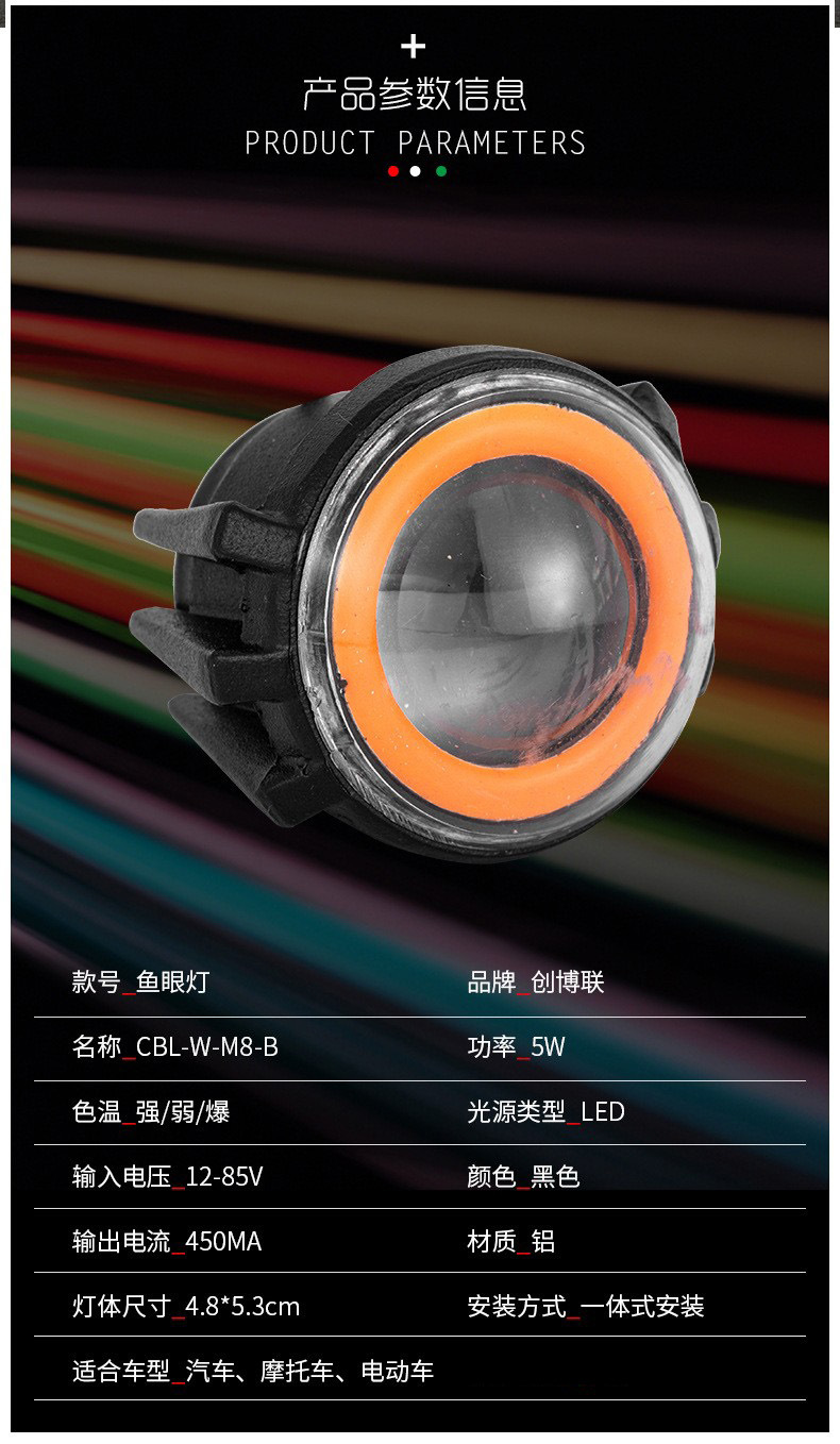 customized motorcycle electric vehicle led headlight modified fish eye light strong light car highlight daytime running lamp 中文版