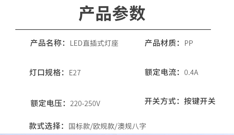 | e27 wall head-national standard plug | ¥0.7 | 897631 piece available |