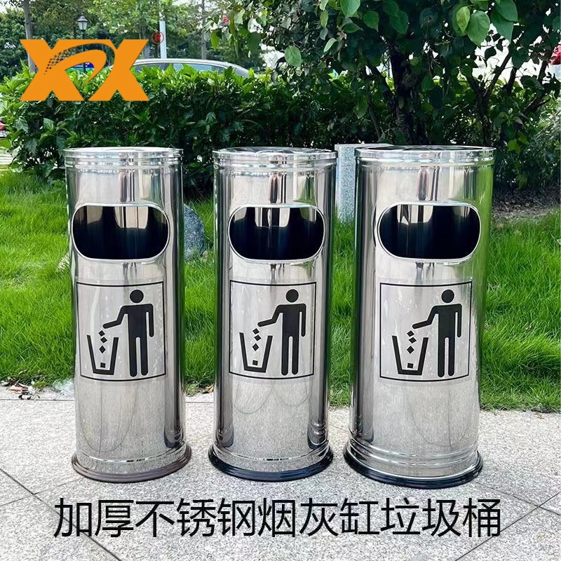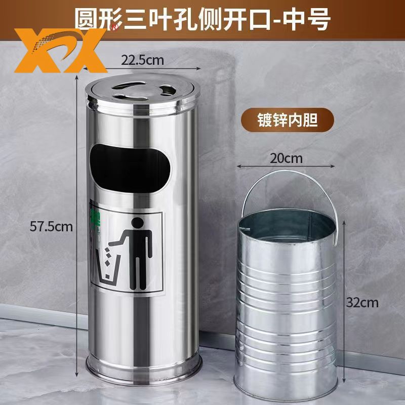 stainless steel kitchenware trash can hotel lobby shopping mall outdoor vertical classification round ash bucket kitchen supplies 中文版