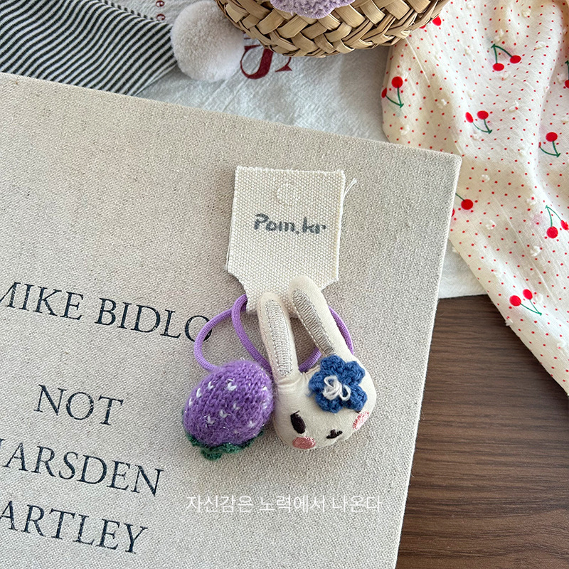 [5] purple strawberry rabbit hair ring