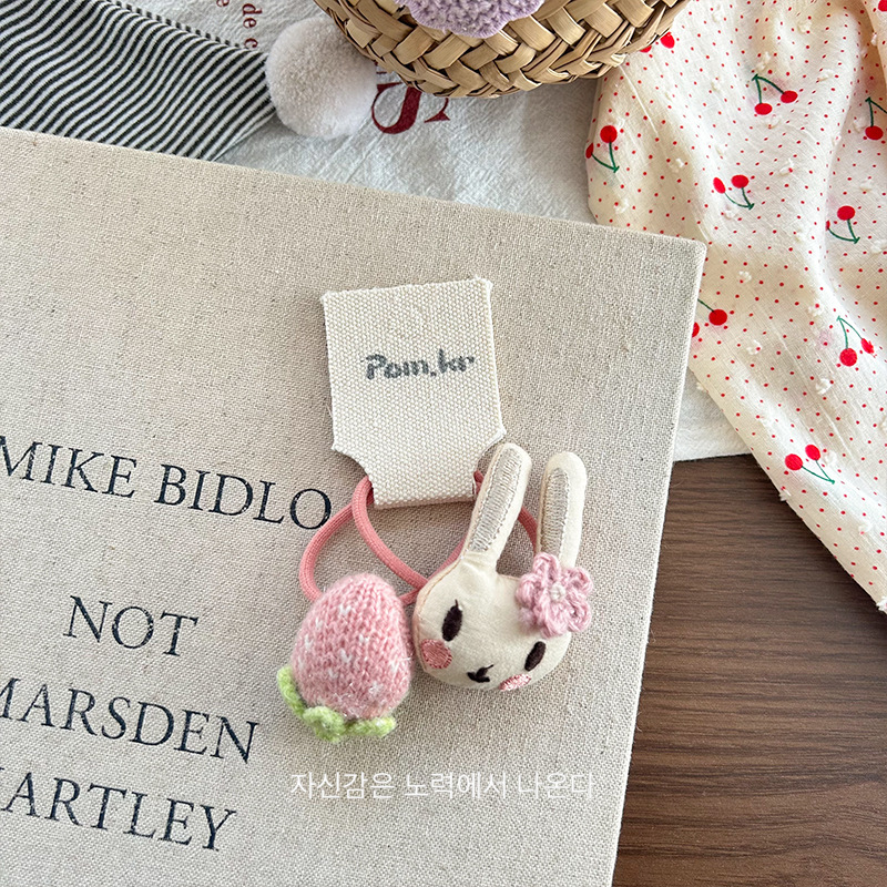 [2] pink strawberry rabbit hair ring