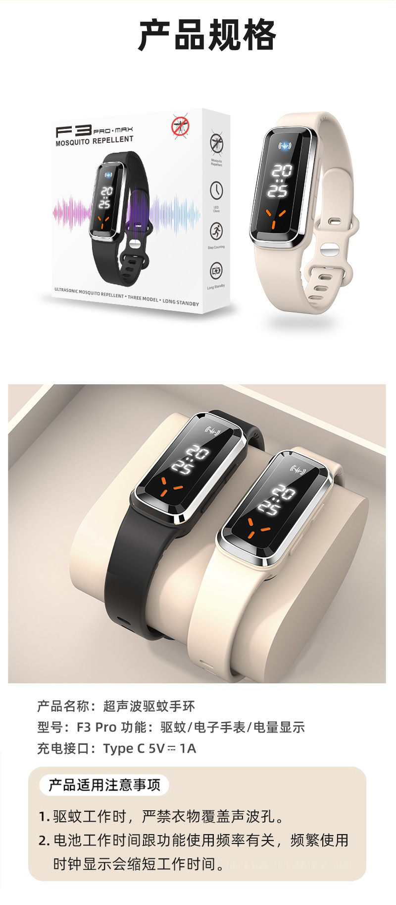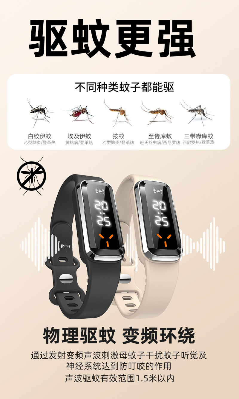 Product Features:Mosquito repellent + electronic watch + battery life display