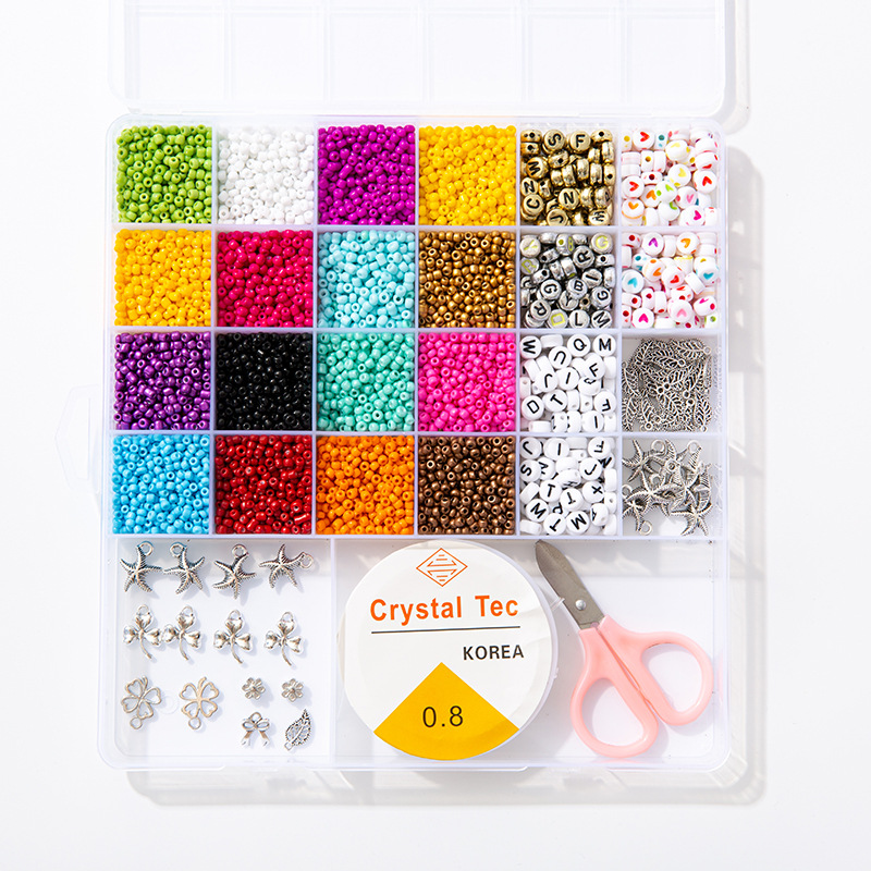Product content: 16-color rice beads + 4-grid letter beads + 2-grid heart beads + 2-grid alloy accessories