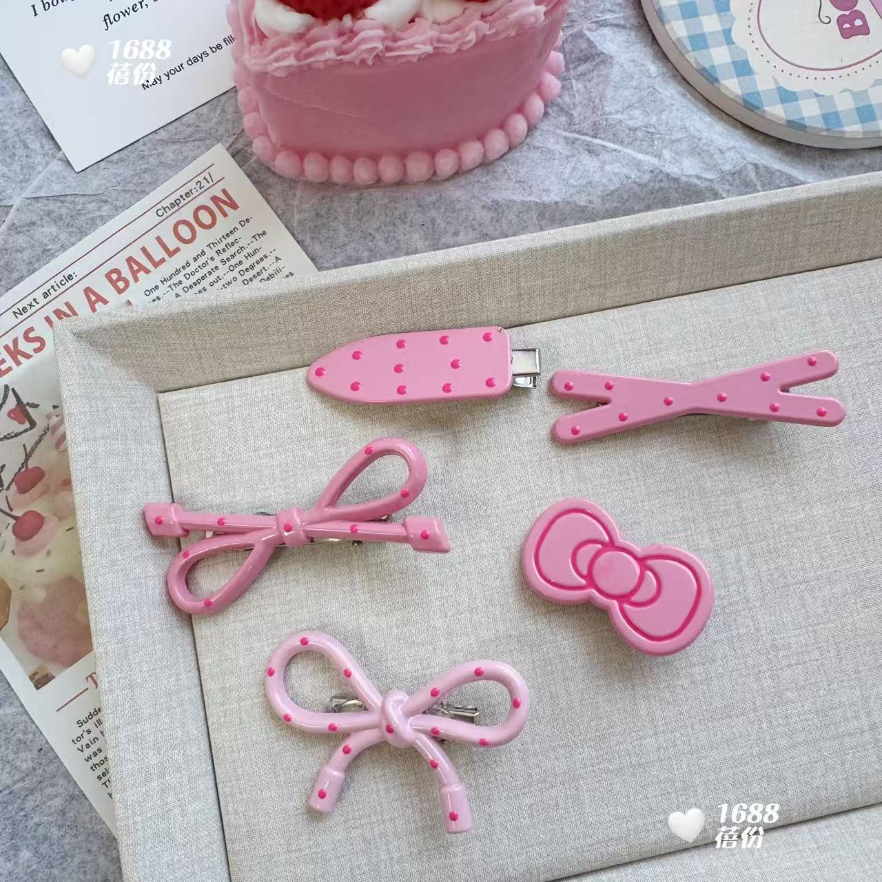 pink blue polka dot hollow bow [pink]]