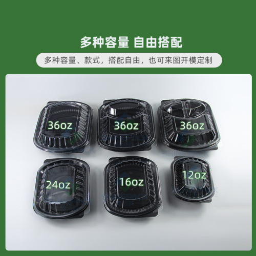 spot disposable lunch box food grade takeaway packing box thickened black two-grid three-grid lunch box fast food lunch box