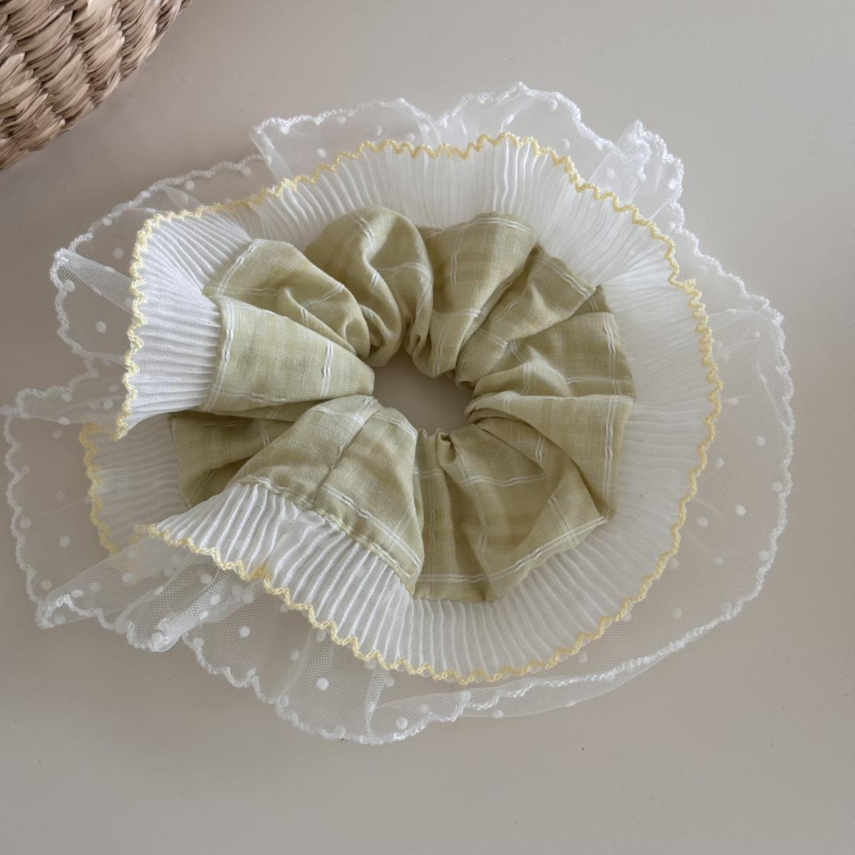 polka dot pleated double-layer edge-green