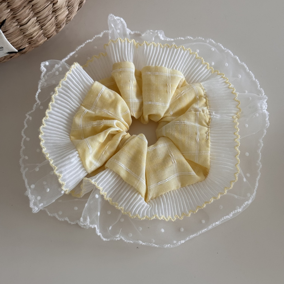 polka dot pleated double-layer edge-yellow