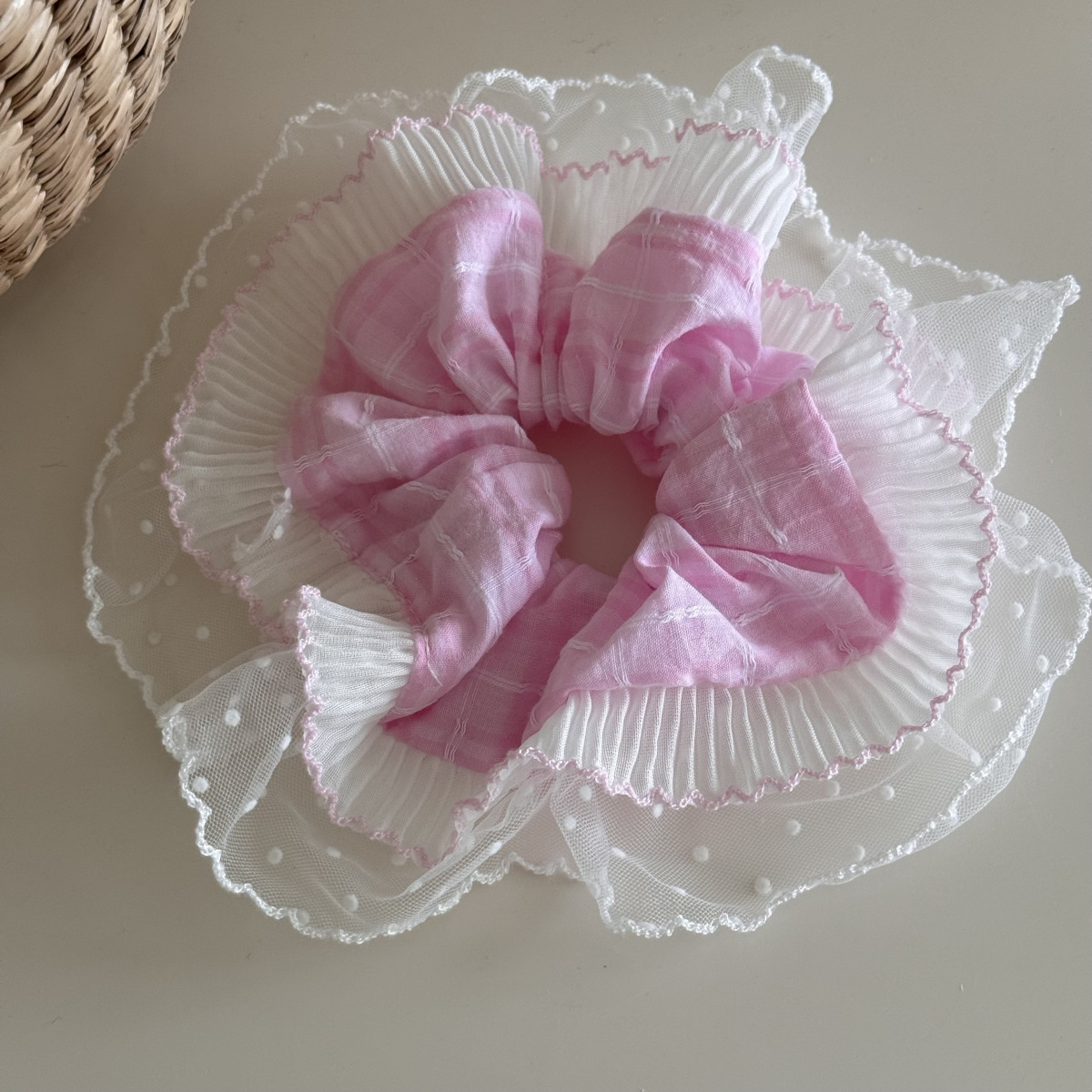 polka dot pleated double-layer edge-pink