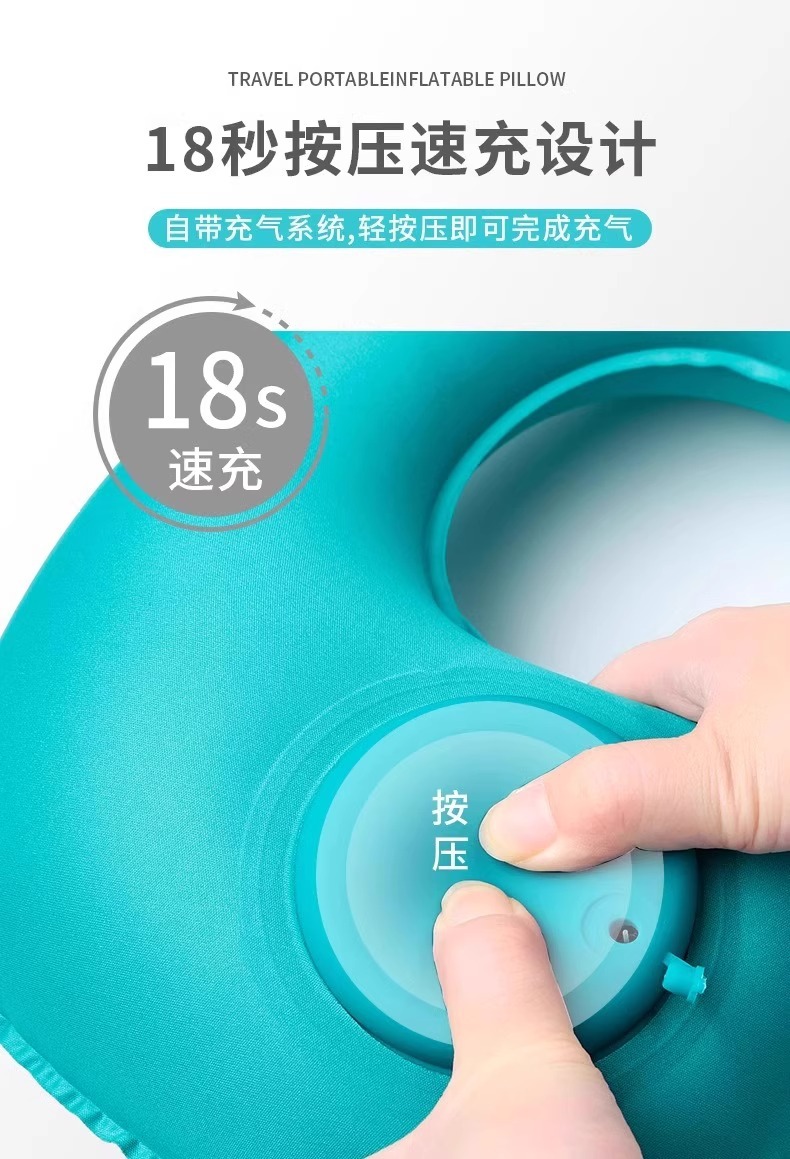 flocking u-shape pillow [sky blue 1 pack]]★press quick charge folding storage
