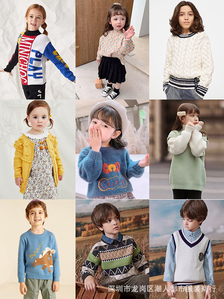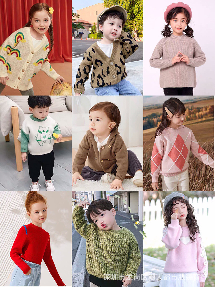 Children's sweater, multiple styles of the same type are shipped together, about 100 pieces with 20 different styles, no fixed images are shipped. Each batch of colors and patterns will be updated!
