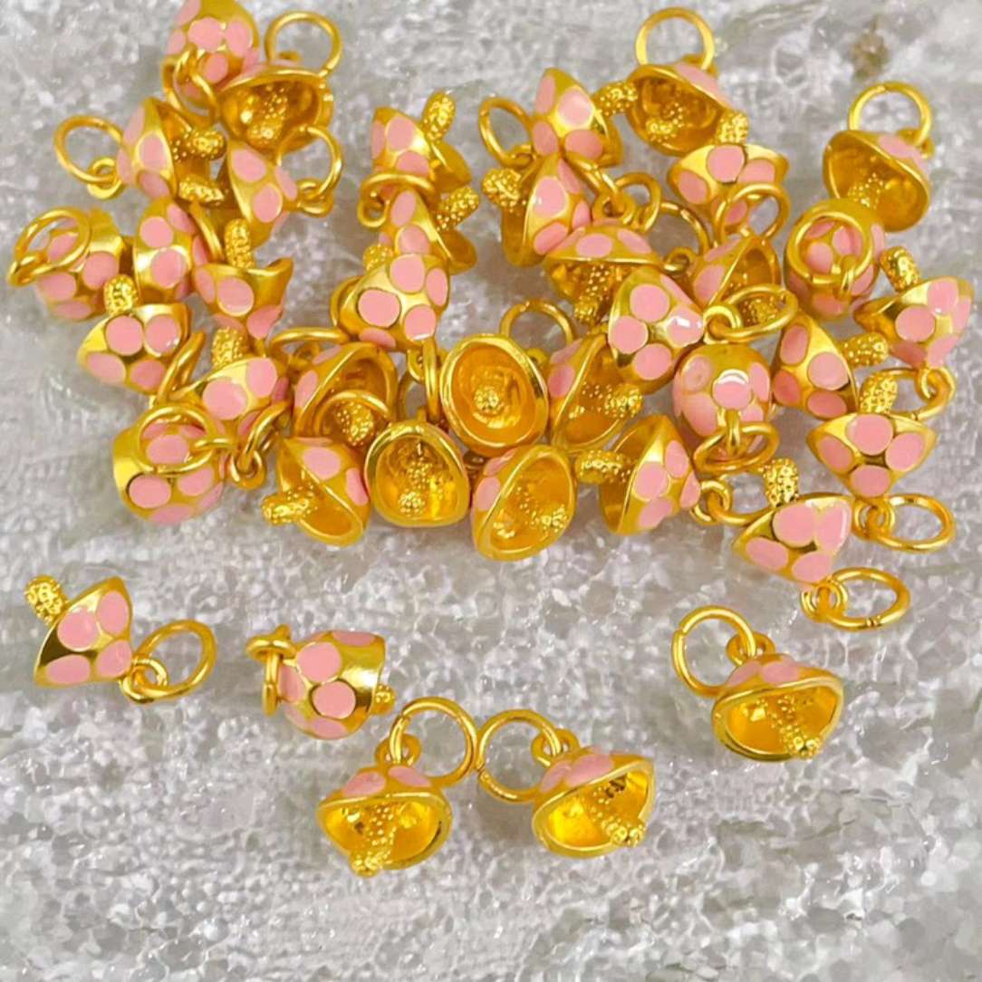 Pink and tender little bell pendants with a golden base and pink polka dots, they are delicate and playful, like capturing the sweetness of spring in a small pendant. Wear them on a bracelet or as earrings, and with a gentle movement, it seems you can hear the tinkle, adding a cute "trick" to your handiwork.