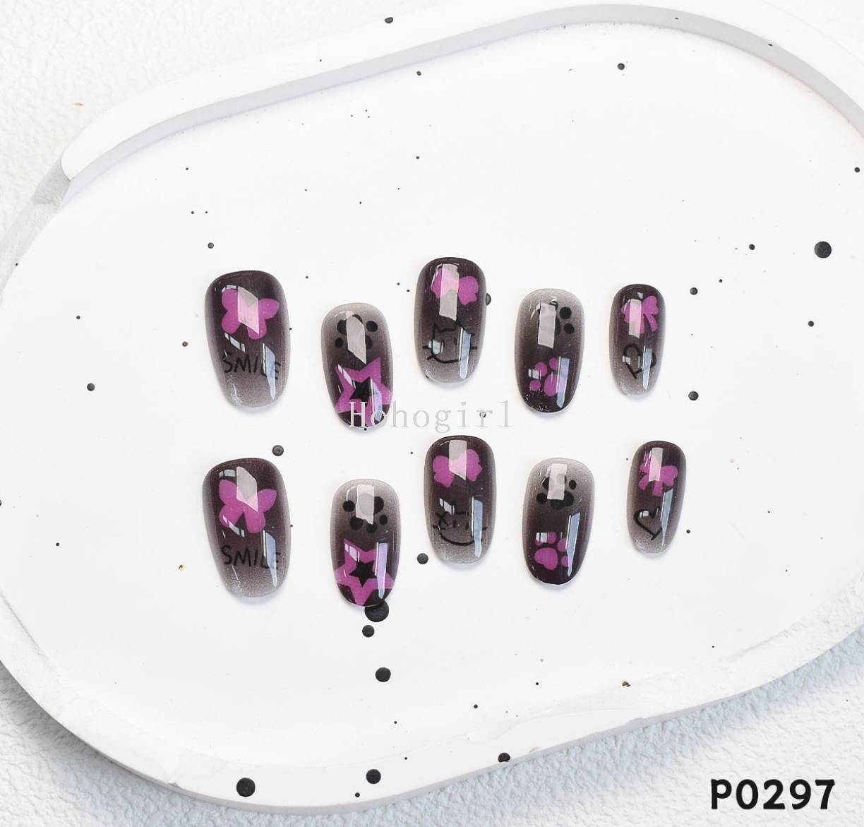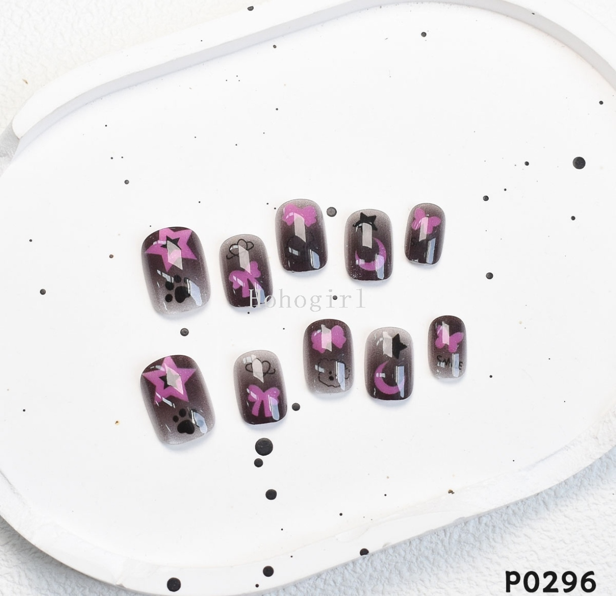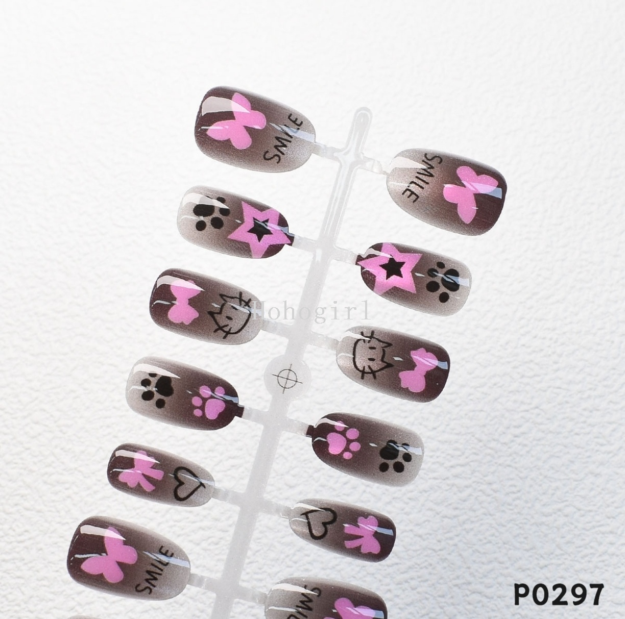 p0295-297 sweet cool black pink puppy xingx nail wear nail special full stickers fake nails seamless 中文版