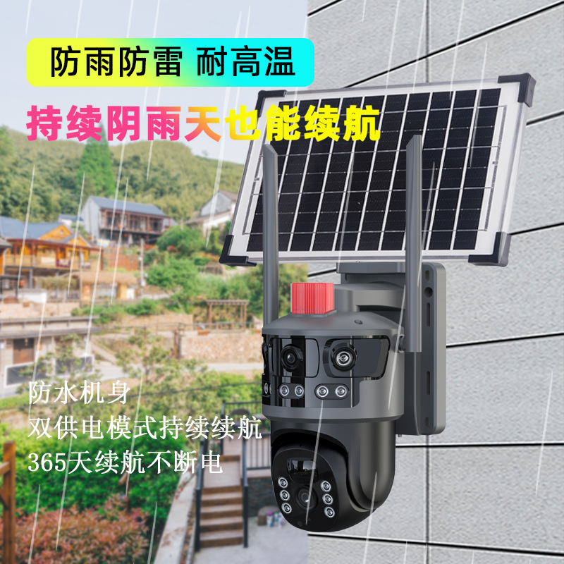 solar three-screen surveillance camera outdoor non-electric network ultra-clear night vision 4g wireless wifi360 panoramic view