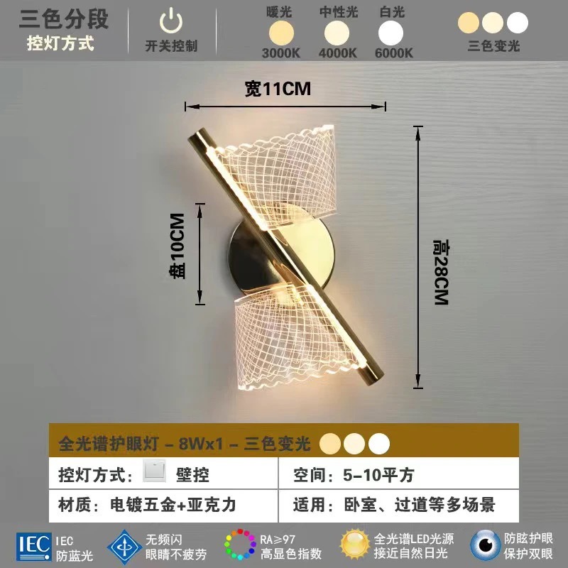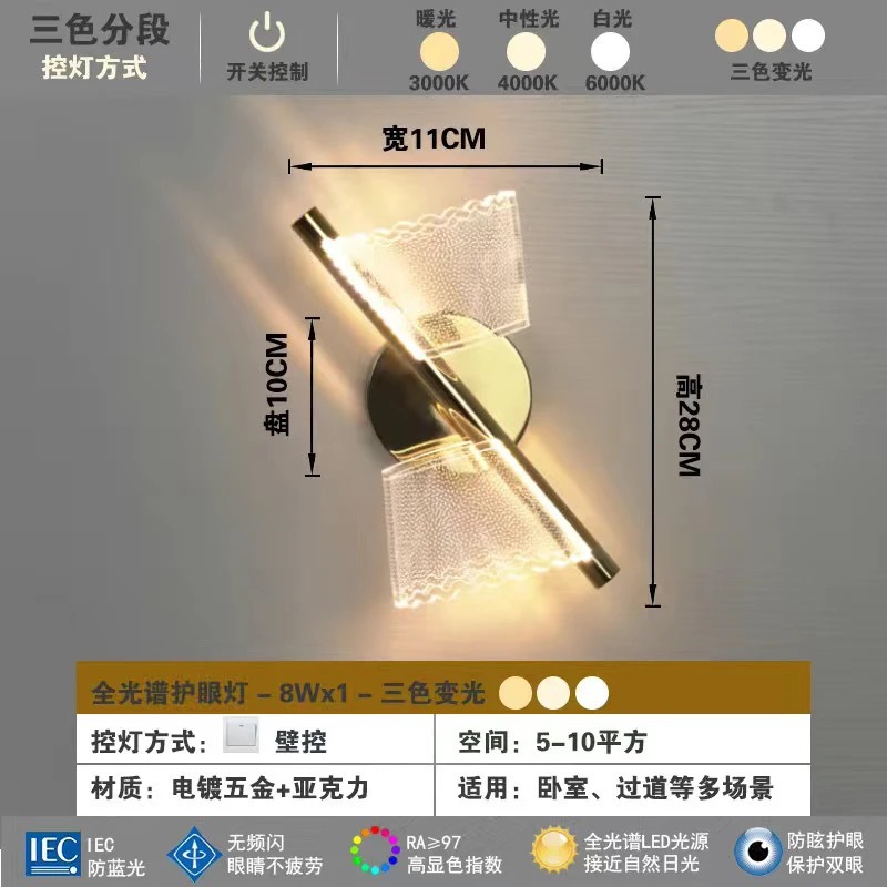 light luxury wall lamp bedroom bedside lamp modern minimalist new living room acrylic background wall creative aisle corridor light 中文版