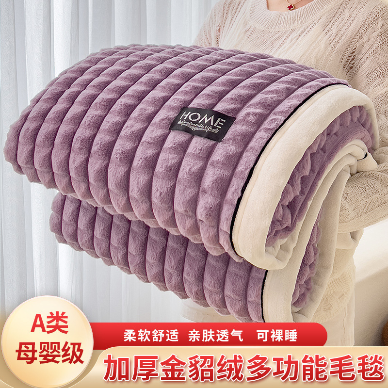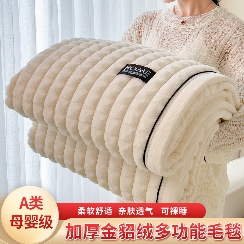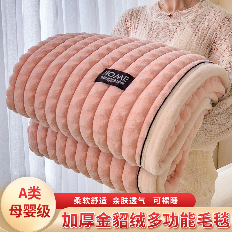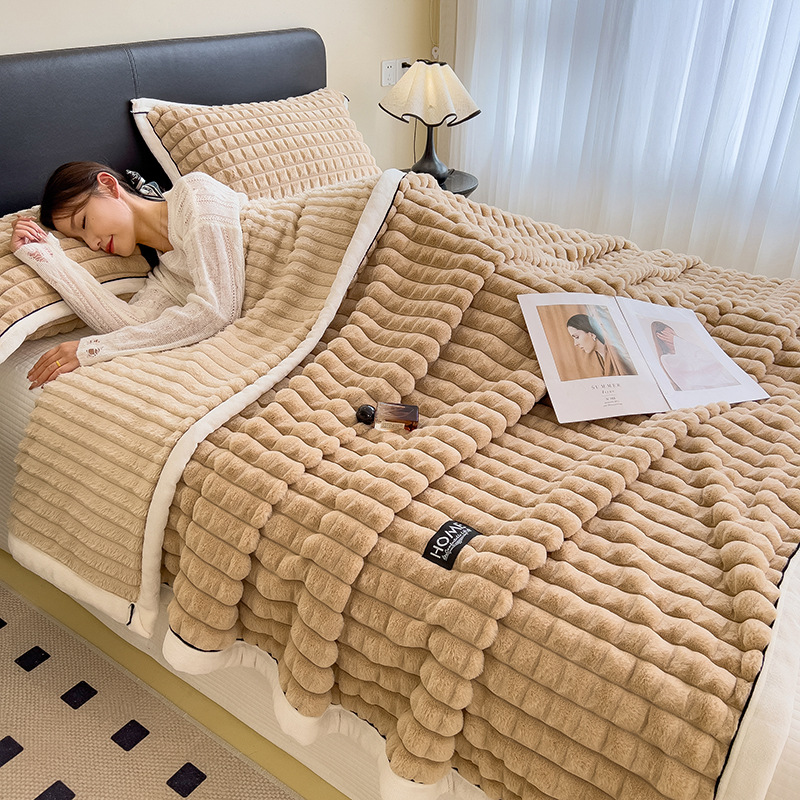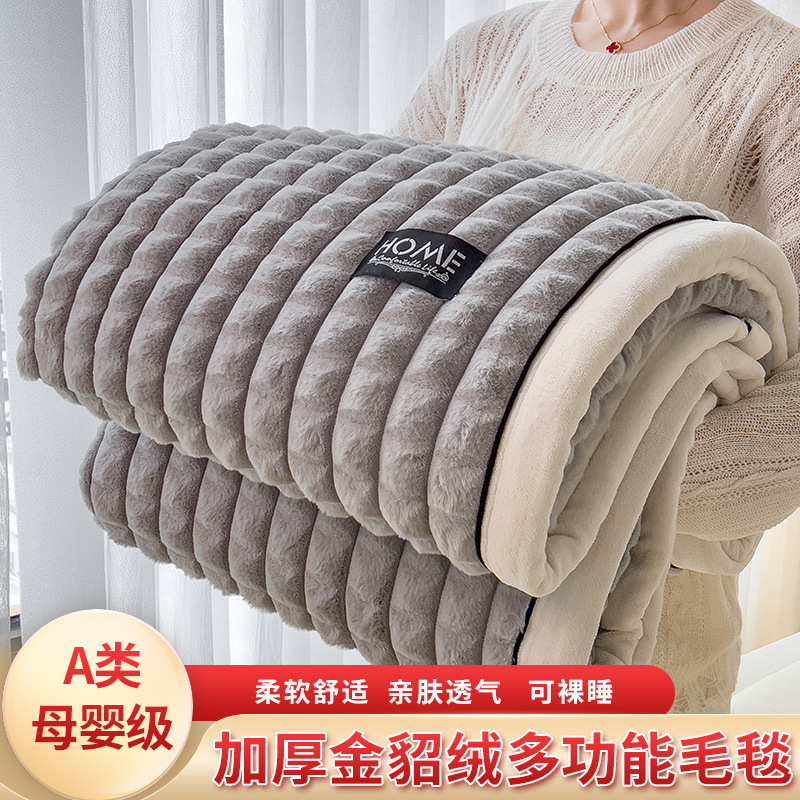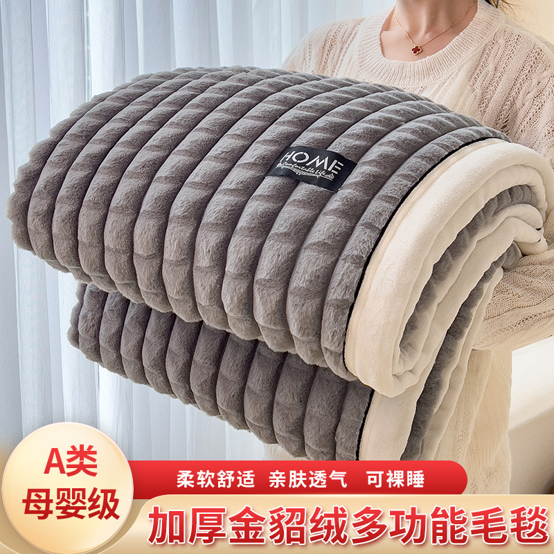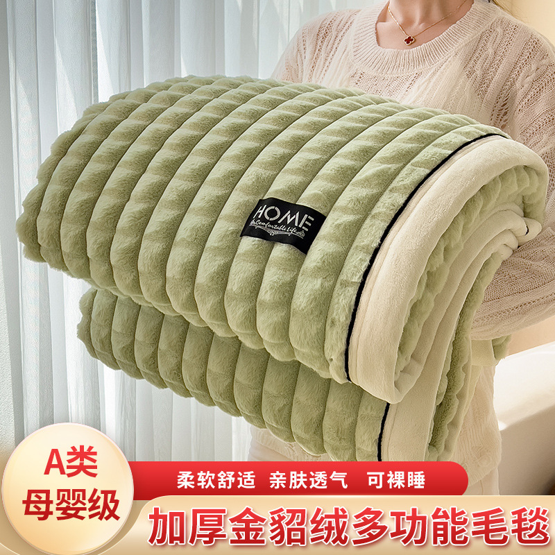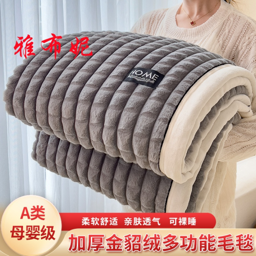foreign trade type a sable fur cut grid multi-functional woolen blanket blanket 100 * 150cm sable fur-khaki 中文版