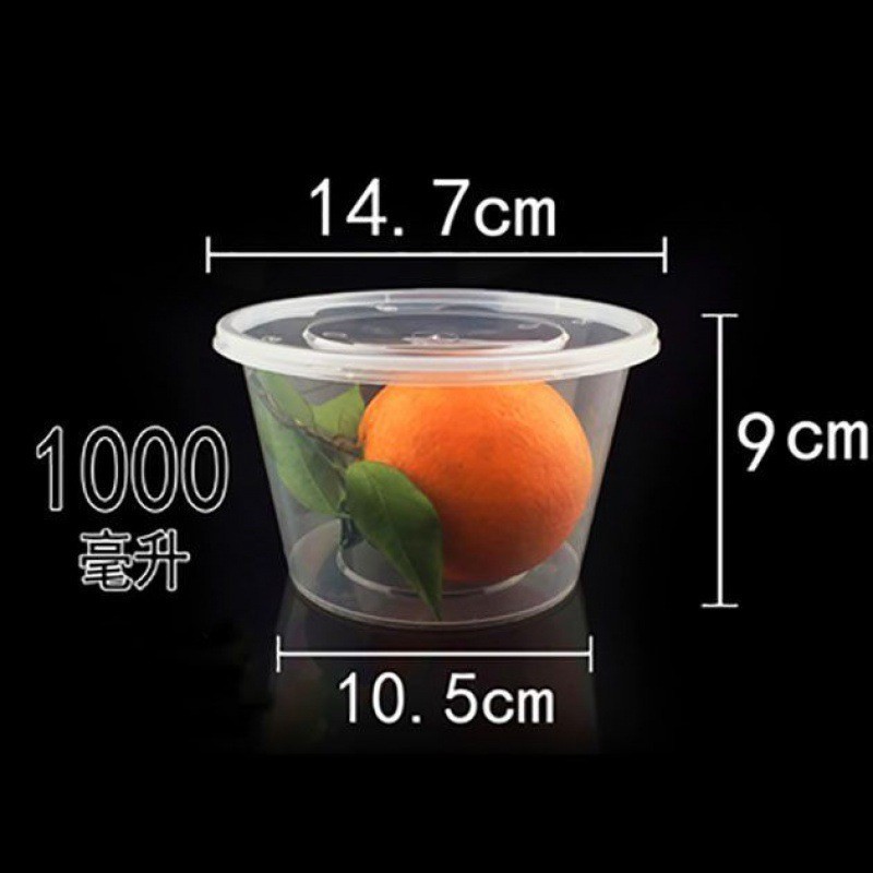 1000 ml transparent round box (50 pcs with lid)