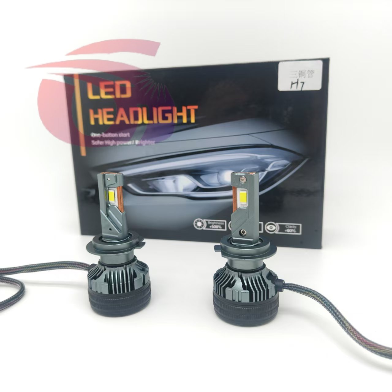 Car LED headlight, high-power three copper tube.