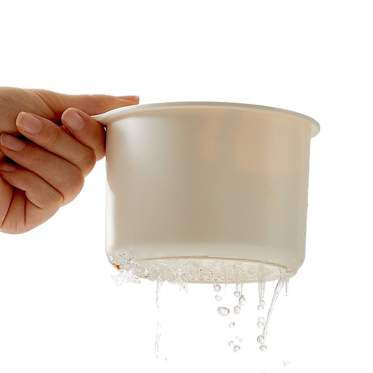 white sink hanging colander
