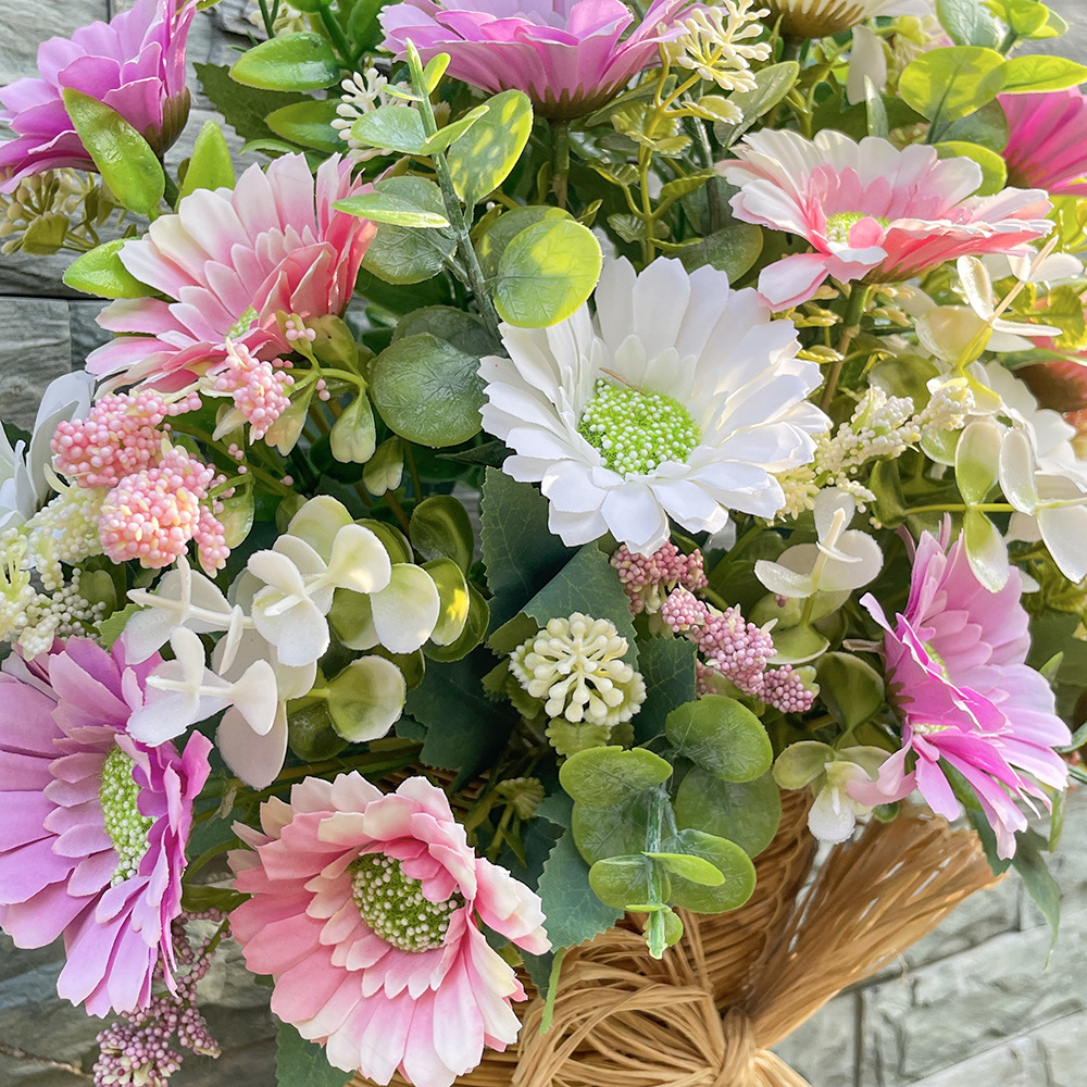 olive daisy eucalyptus flower basket