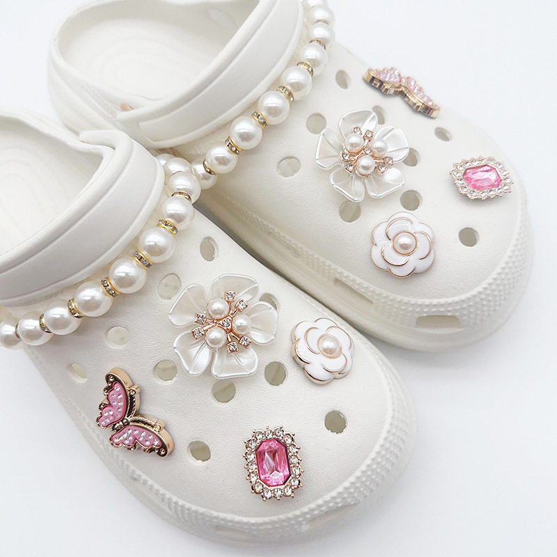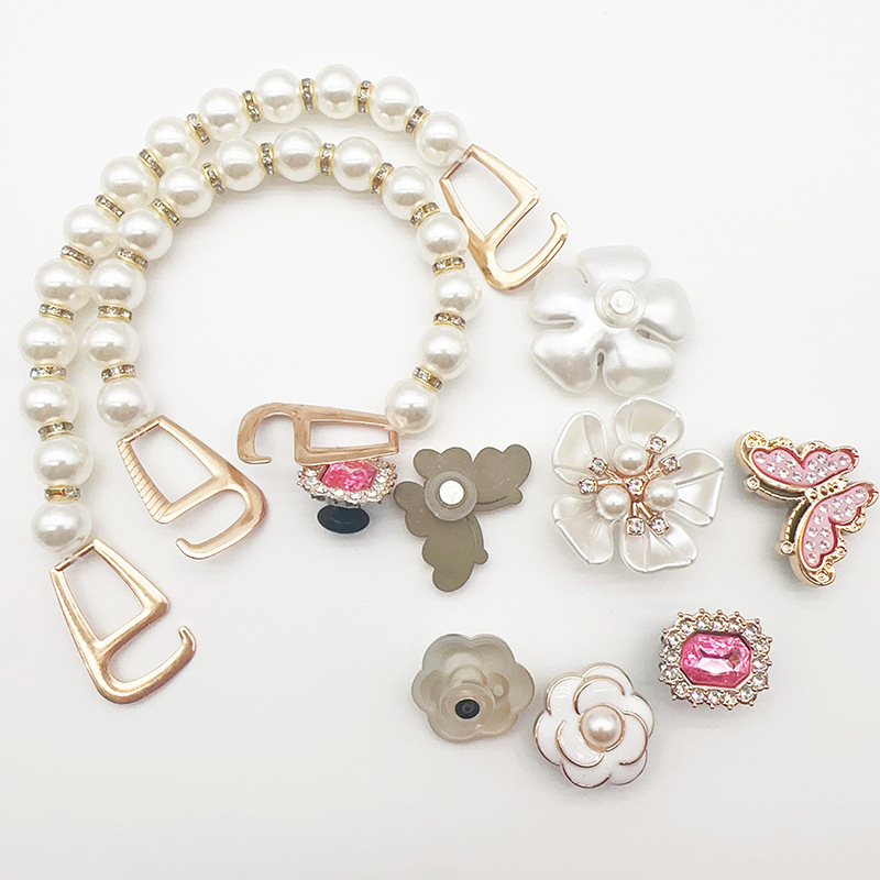 [pearl chain pink butterfly] 10-piece set (directly installed with buckle)