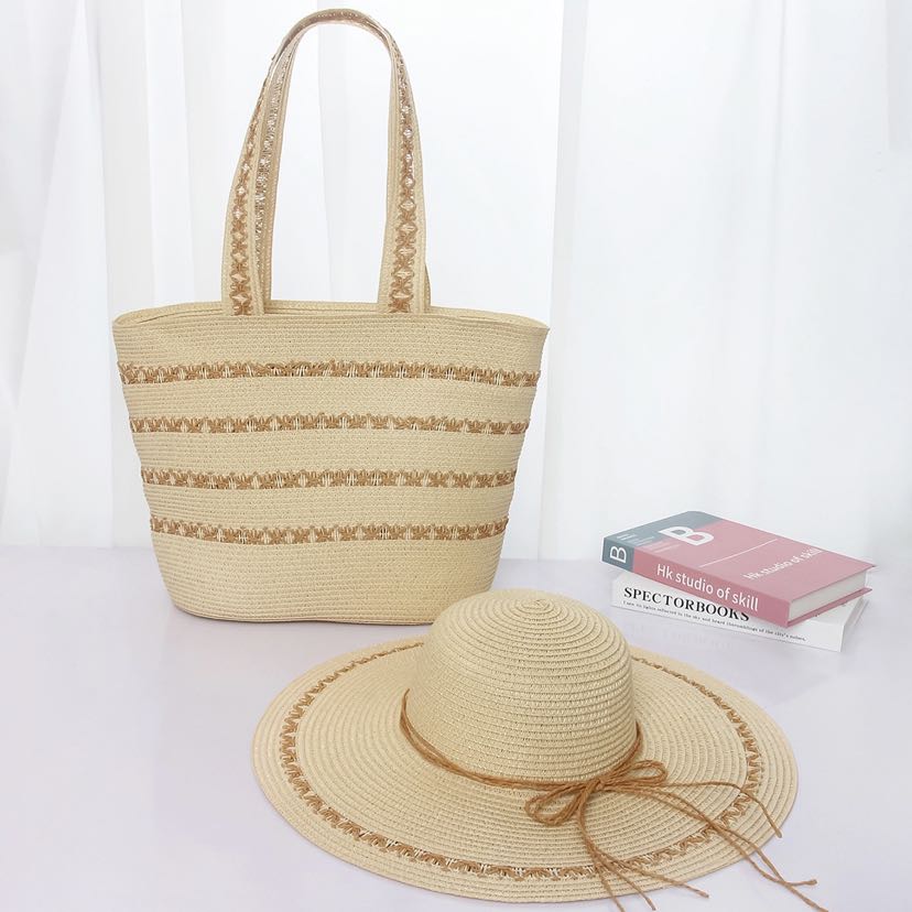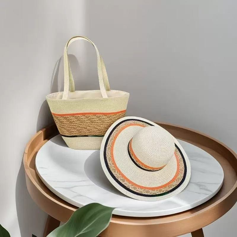 summer new hat women's cross-border sun protection sun hat straw woven bag two-piece summer outdoor straw hat sun hat 中文版