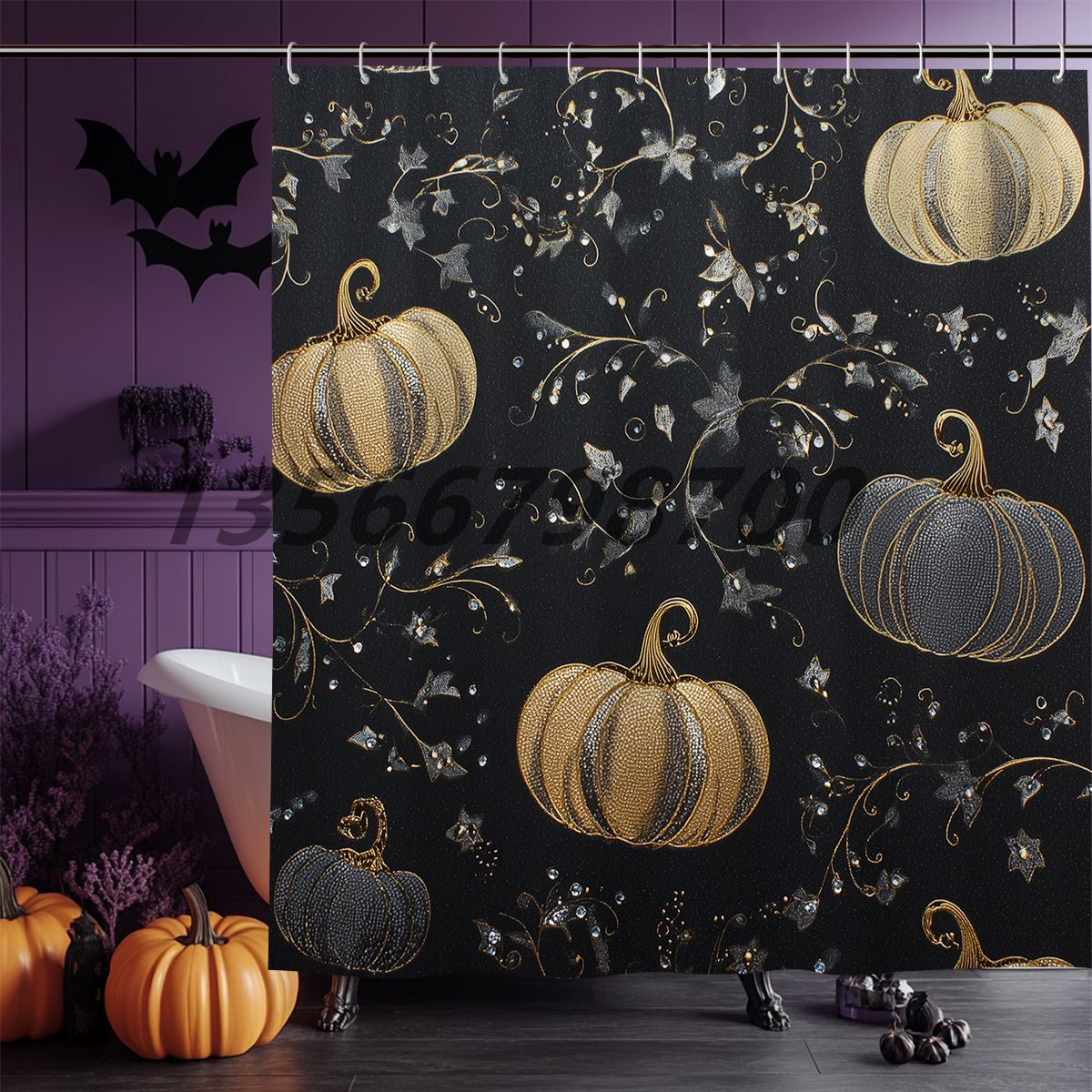 [muqing] halloween shower curtain holiday supplies polyester shower curtain waterproof partition mildew-proof cartoon shower curtain 中文版
