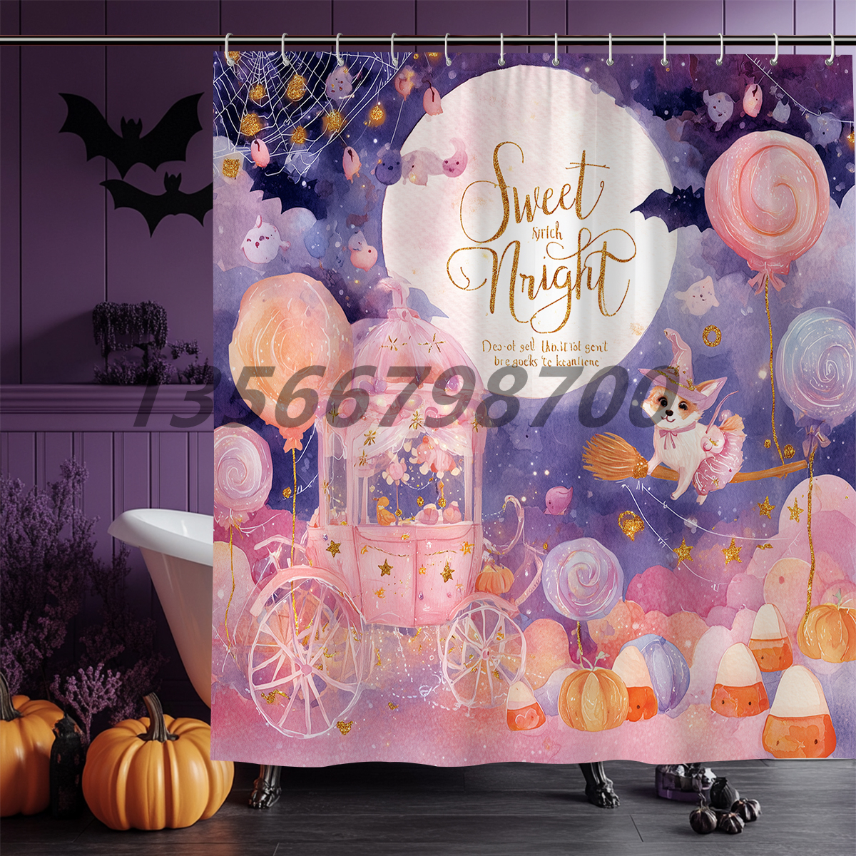 [muqing] halloween shower curtain holiday supplies polyester shower curtain waterproof partition mildew-proof cartoon shower curtain 中文版