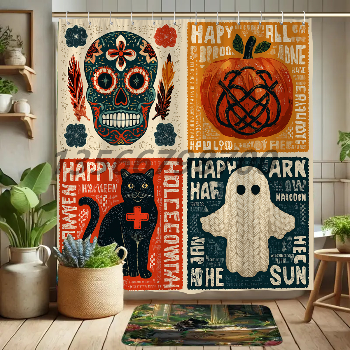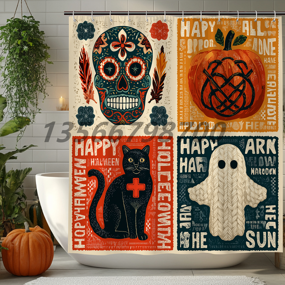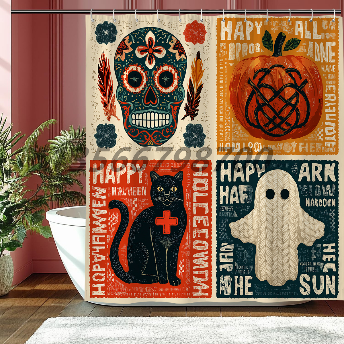 [muqing] halloween shower curtain waterproof partition bathroom curtain holiday supplies polyester shower curtain mildew-proof cartoon shower curtain 中文版