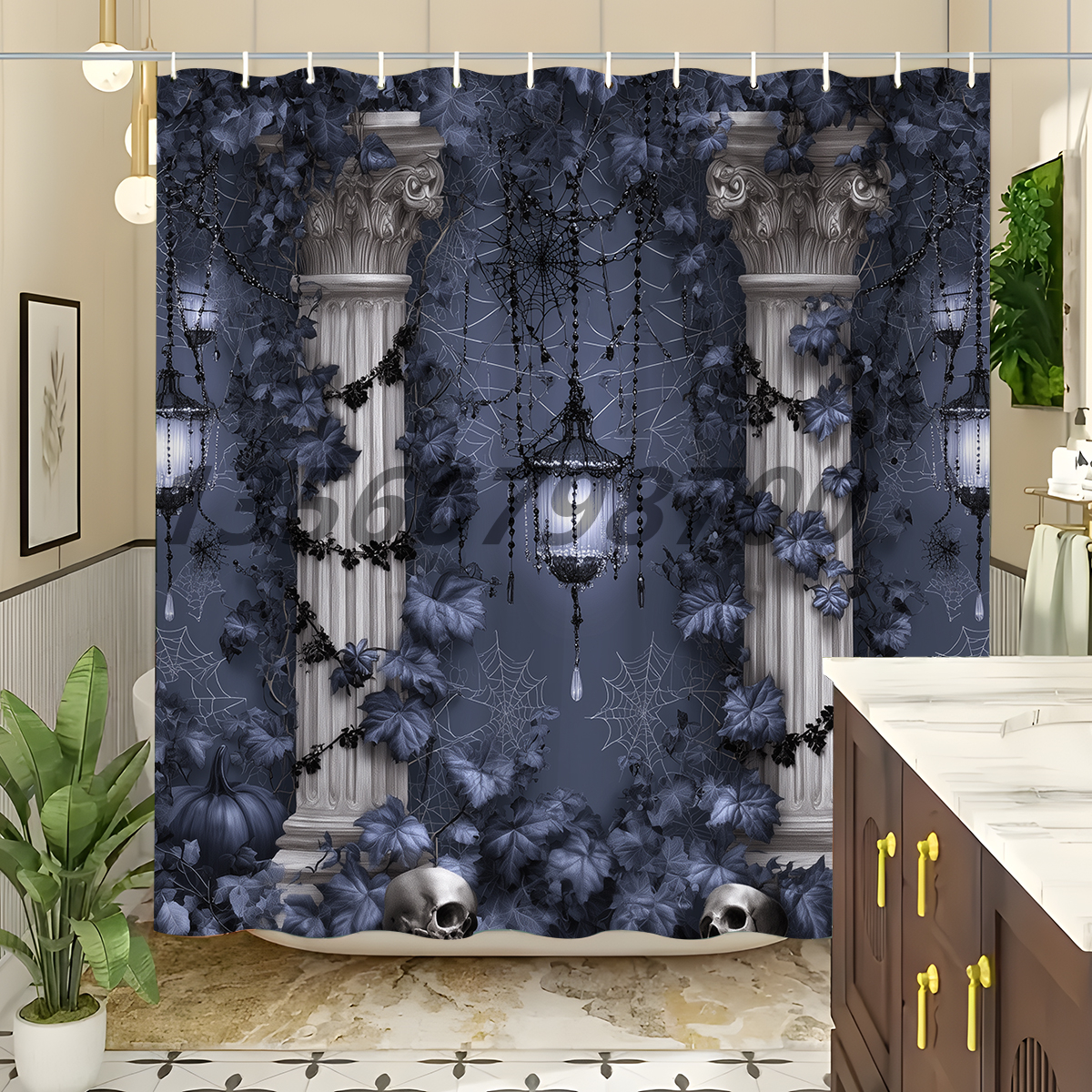 [muqing] polyester shower curtain mildew-proof cartoon shower curtain halloween shower curtain waterproof partition bathroom curtain holiday supplies 中文版
