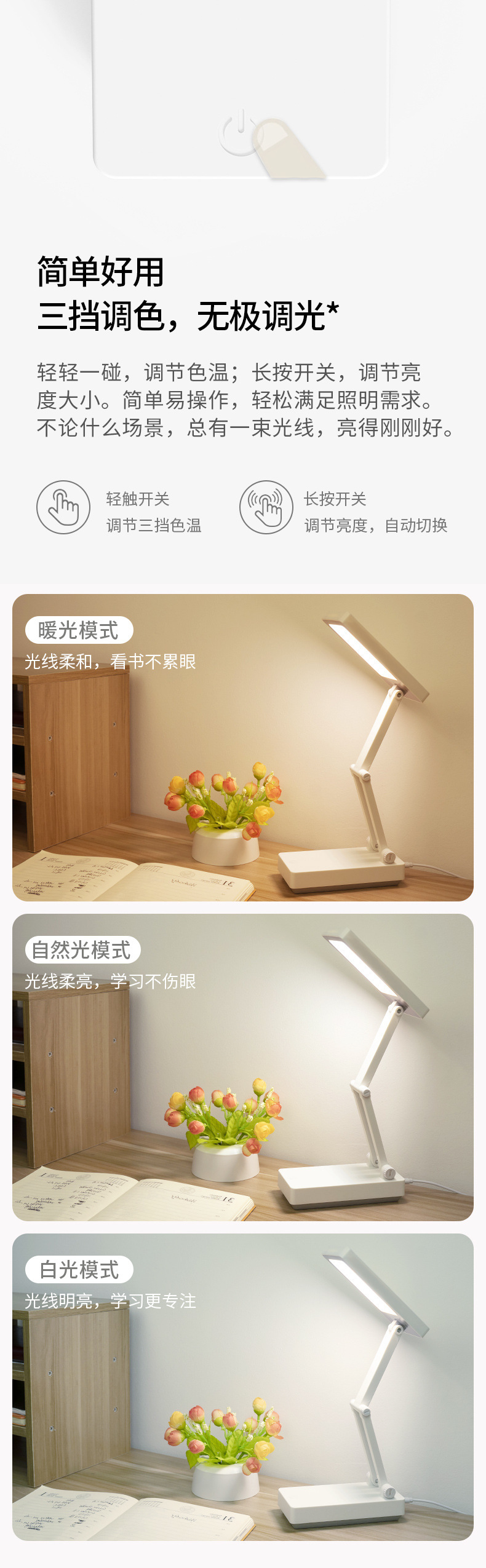 5: Three-color light, infinitely adjustable brightness