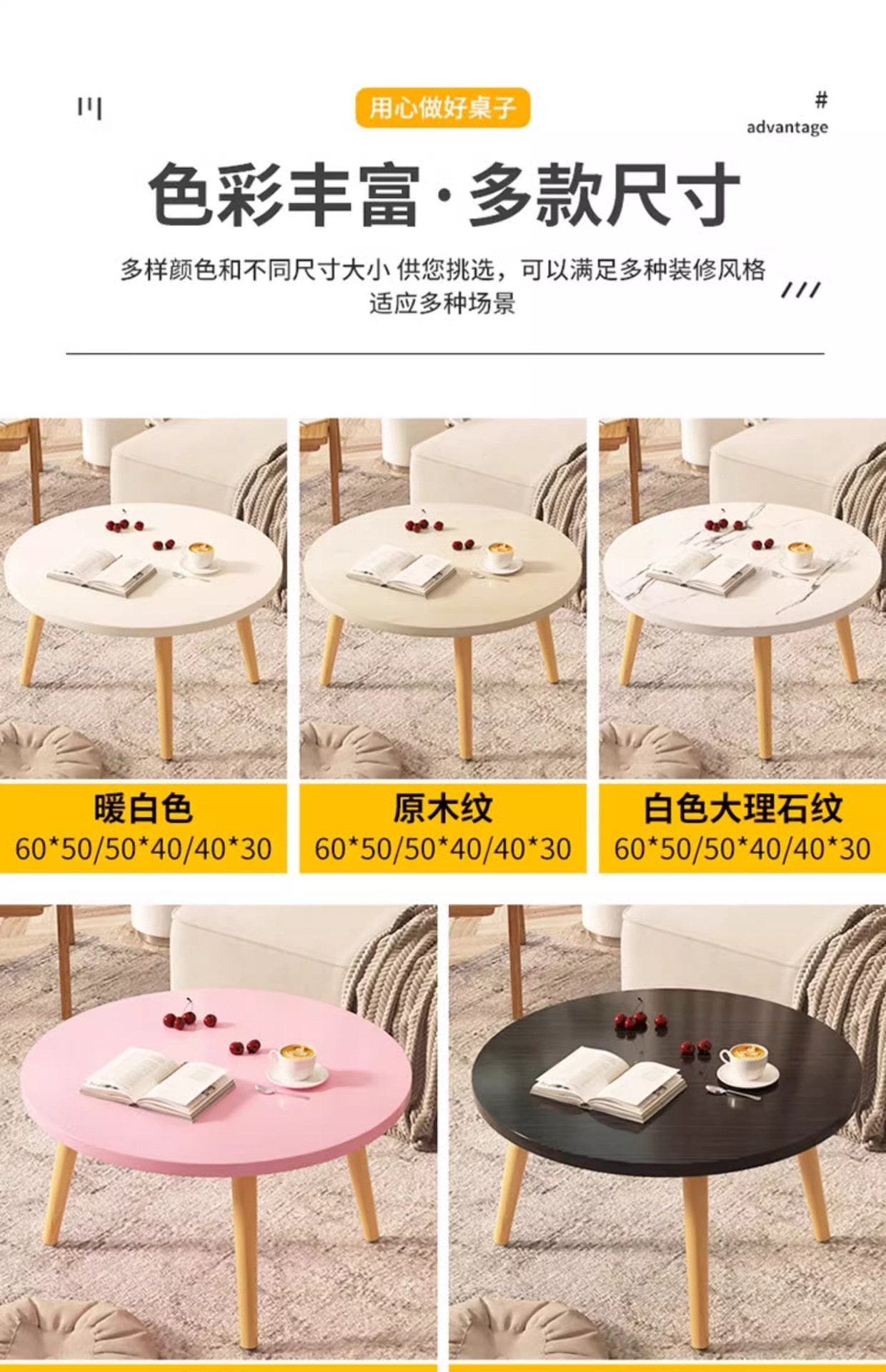 60 round table wood grain diameter 60cm height 50cm